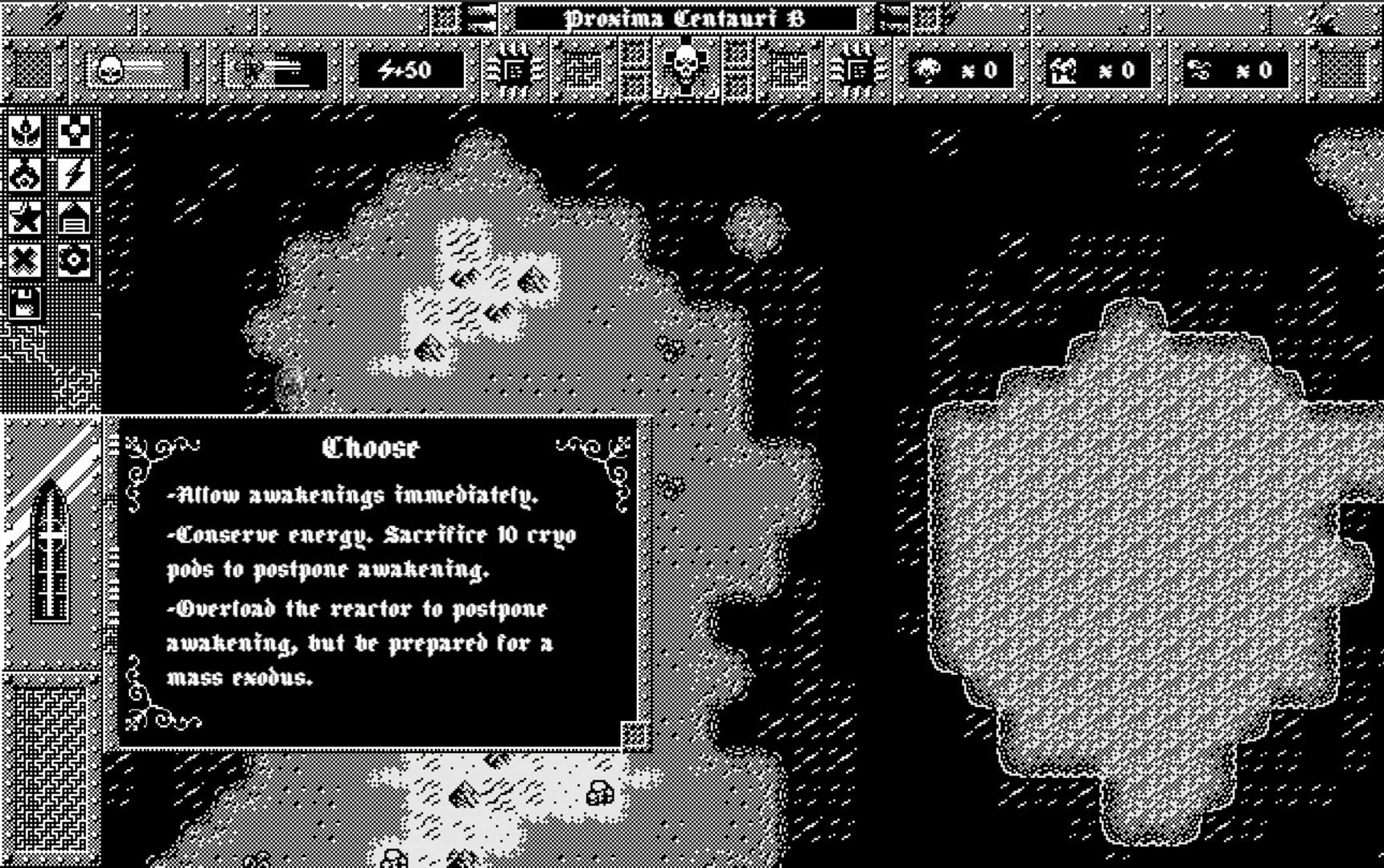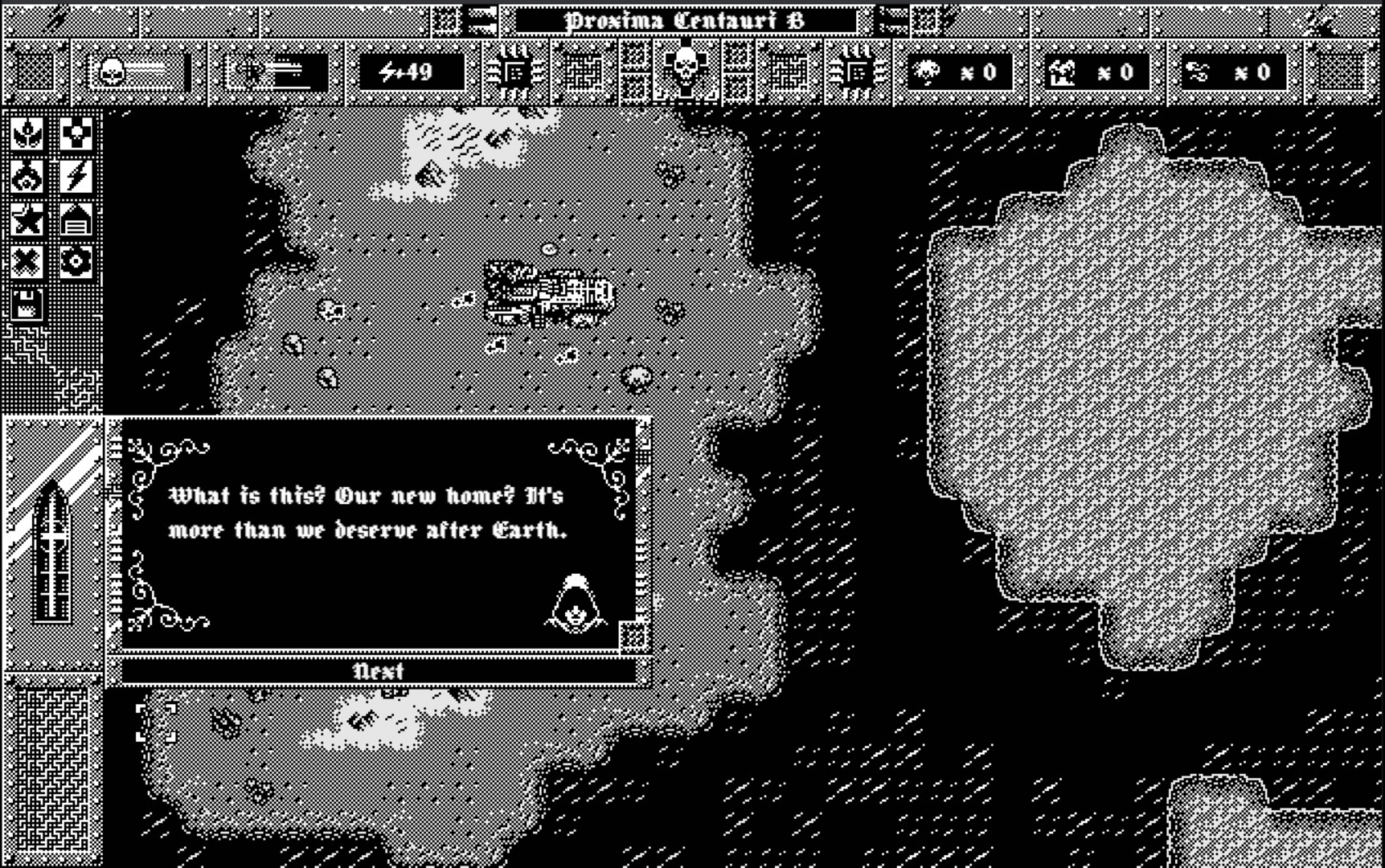 Shepherd the last remnants of the Malthusian monks marooned on Proxima Centauri B. As the colony AI, will you delve into forbidden means to save your people or allow them to go quietly into the night? Set up production chains to spend limited resources to save as many as you can.