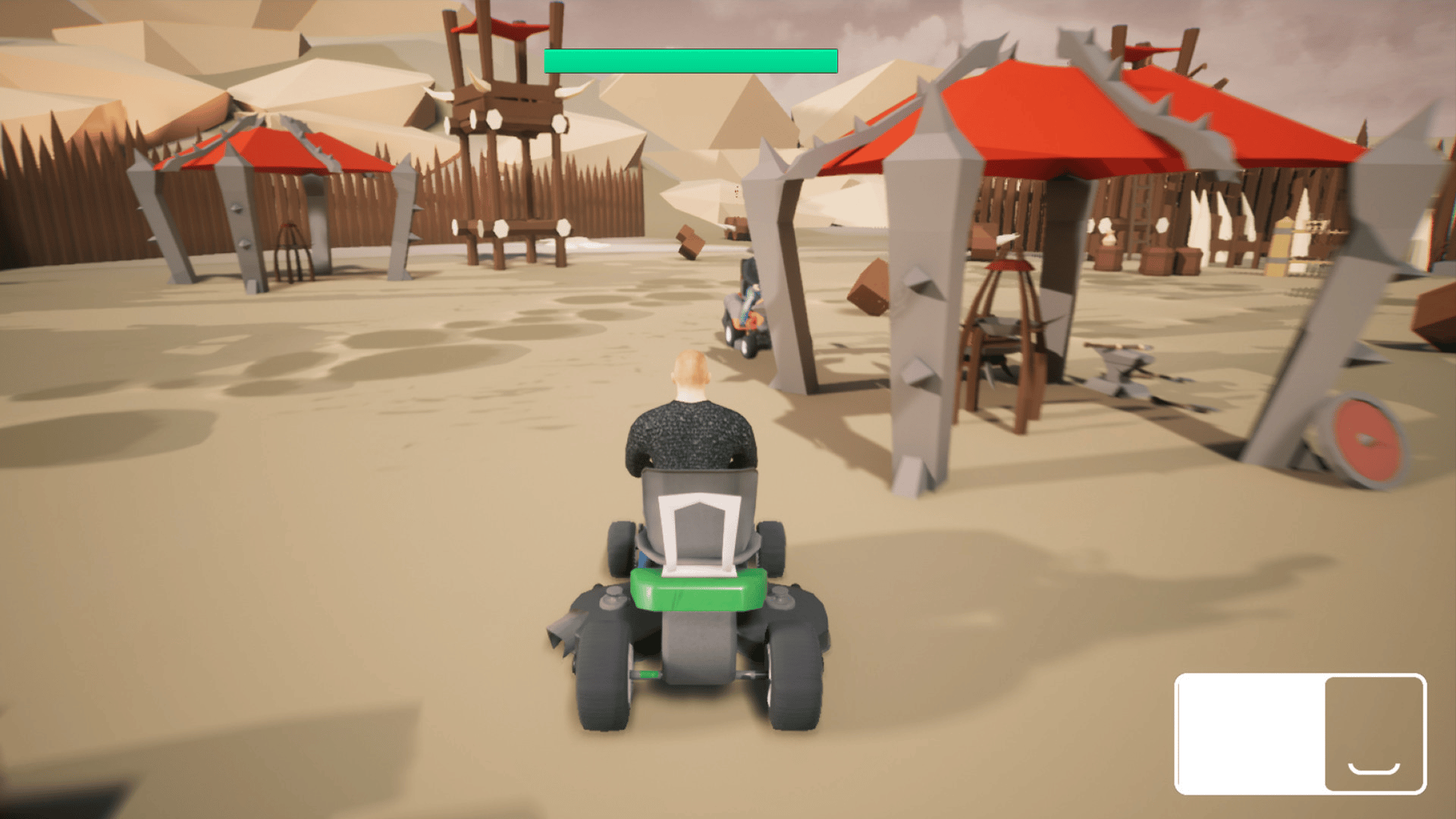New part for Epic lawnmower game series. Now collect different weapons and destroy evil enemy ai lawnmowers in different arenas