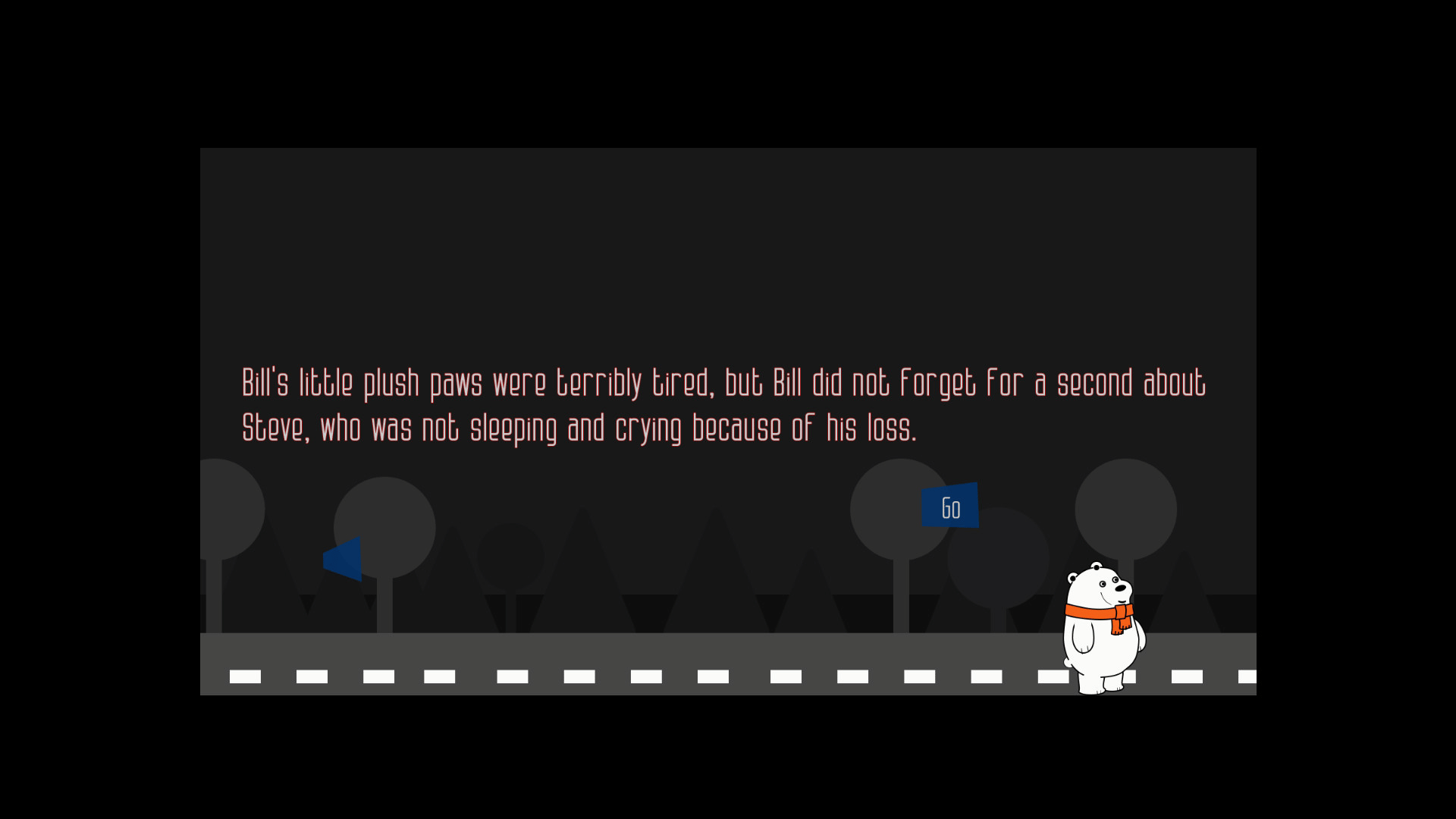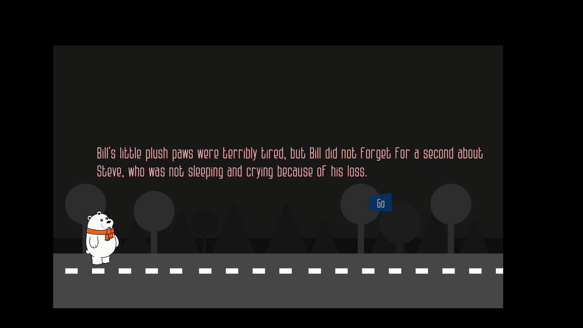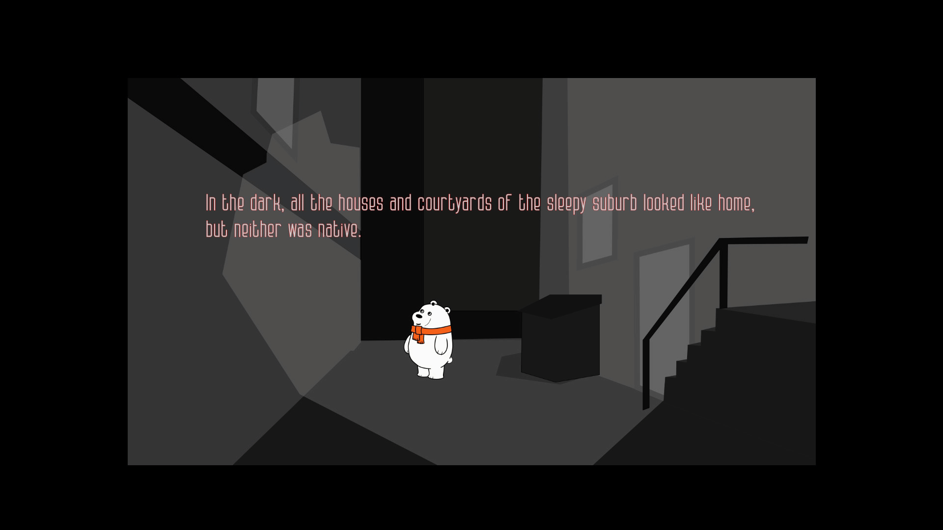 Help the little bear to find the way home. What dangers can be hidden in the night streets of a quiet suburb? Who is waiting for him at home, and who is waiting in the dark around the corner?