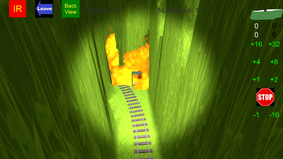 A sci-fi flying person vs. robot battle game. This flyland is a model train layout writ large! But it has been made to be terribly lethal You have to destroy every danger to the refugees! (Come back again, click the arrow button and play trains! Game within the game!)