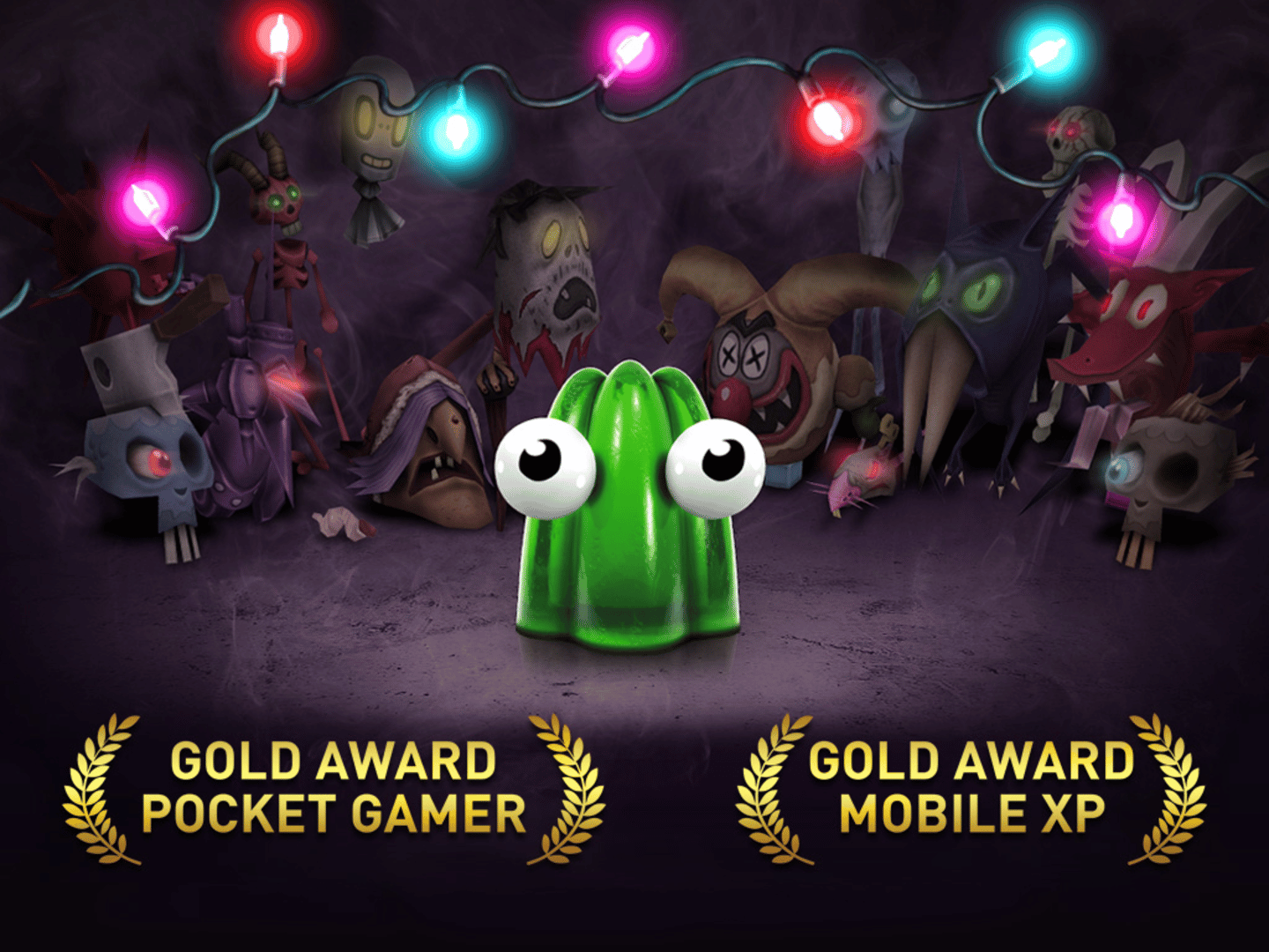 Puzzle a shivering jello through 48 levels of a haunted house. But beware! Scary monsters are waiting in the dark! Your only chance of survival is to scare the monsters back before the jello quivers, shivers and faints from fear. Fight evil witches, rattling skeletons and rusty knights with an arsenal of crazy weapons! Collect coins to reload your weapons and valerian for your nerves! Are you clever and skilled enough to escape the labyrinth and to defeat the final enemies? Test your courage in 48 suspenseful levels and dive into four beautiful 3D worlds! Many variations in gameplay and lots of challenges will make your pulse rise and your adrenalin flow: Solve puzzles, play against the clock, escape the monsters and win treacherous races.