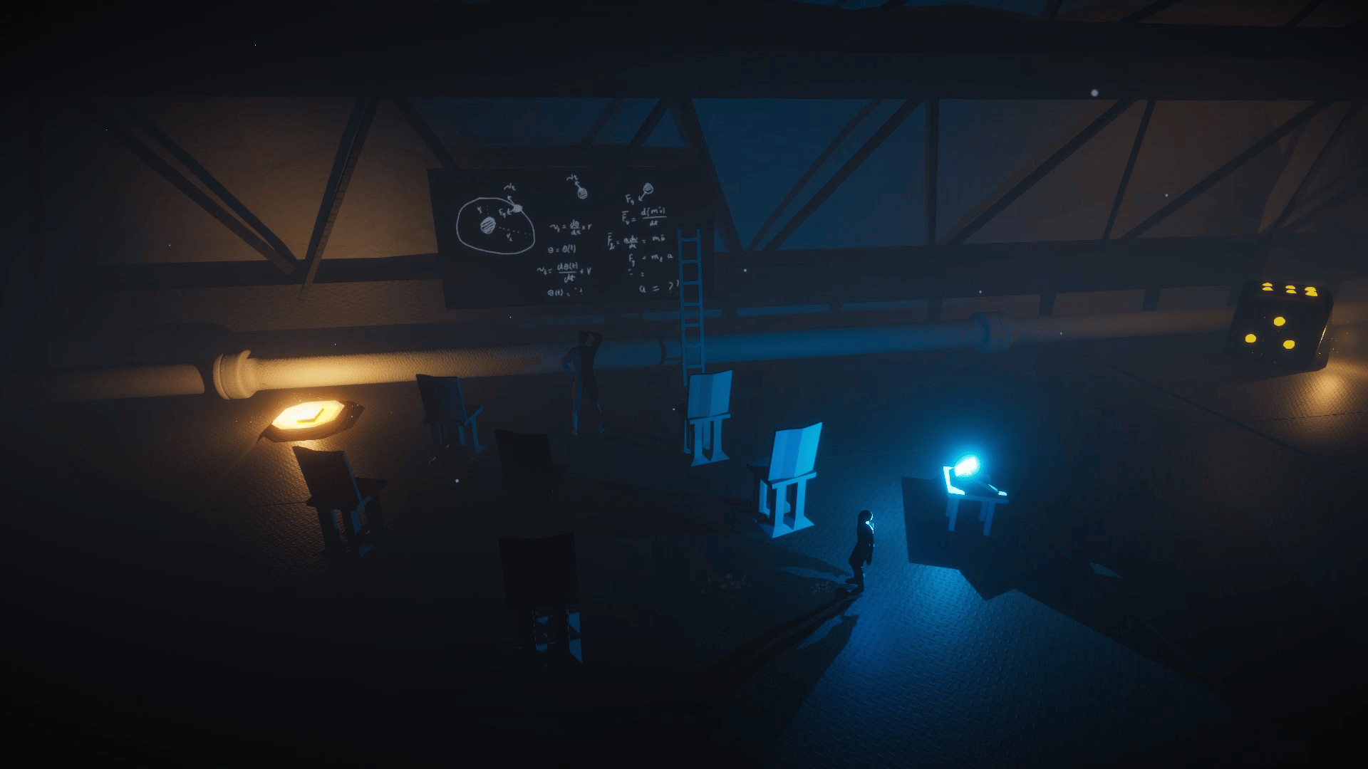 In an alternate reality, using a keyboard and a mouse, despite the danger of dissolving to nothing again, the player chose to transform potential into actuality, in a space of possibility he will try every key and every combination of keys until he forms an ultimate map of this new reality.