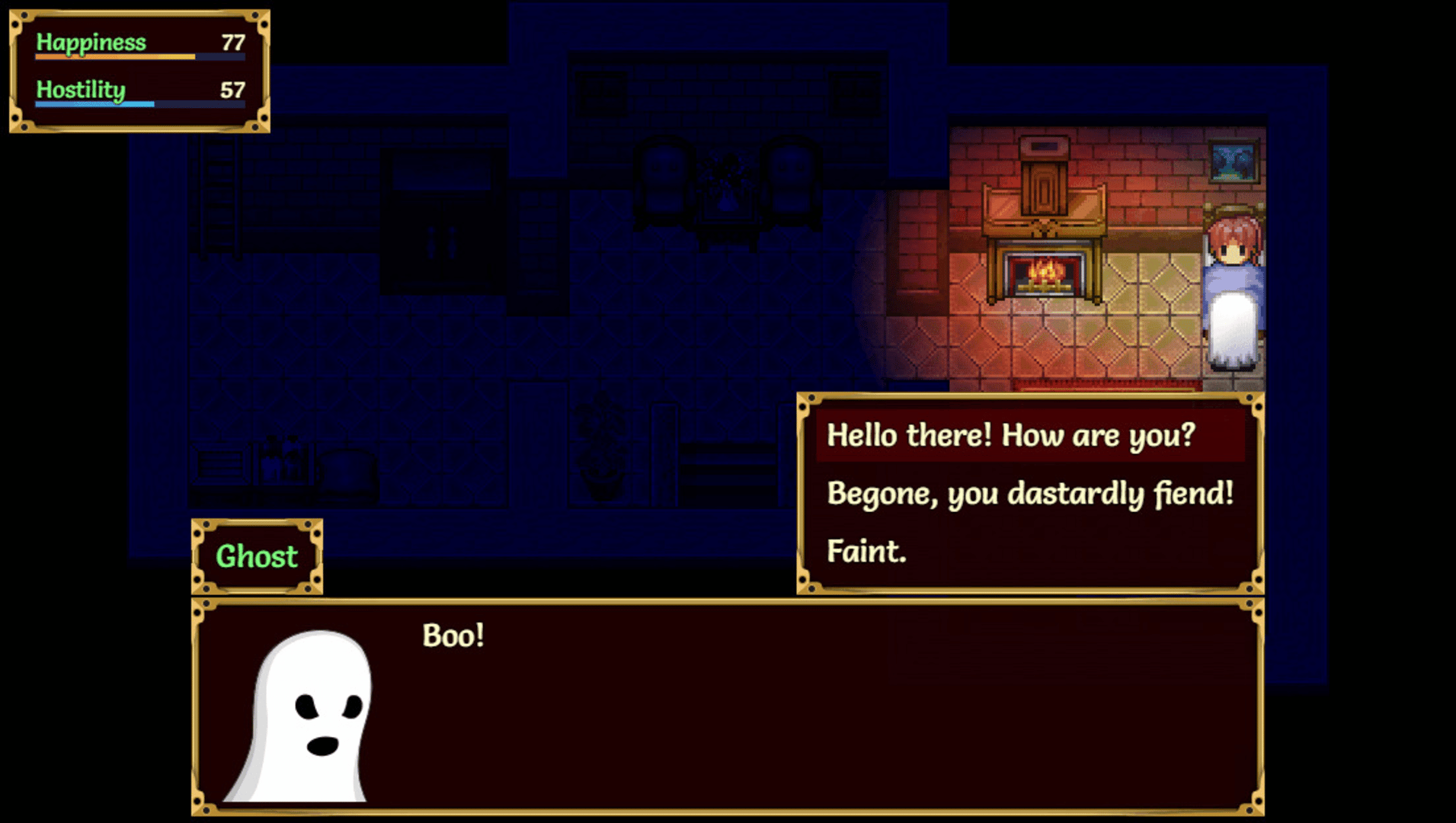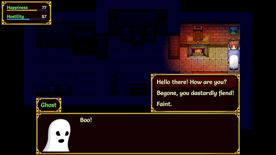In this short and light-hearted adventure game, you inadvertently rent a house with a ghost. Should you befriend the ghost, or drive it out of the house? Multiple endings available depending on your choices and the items you find!