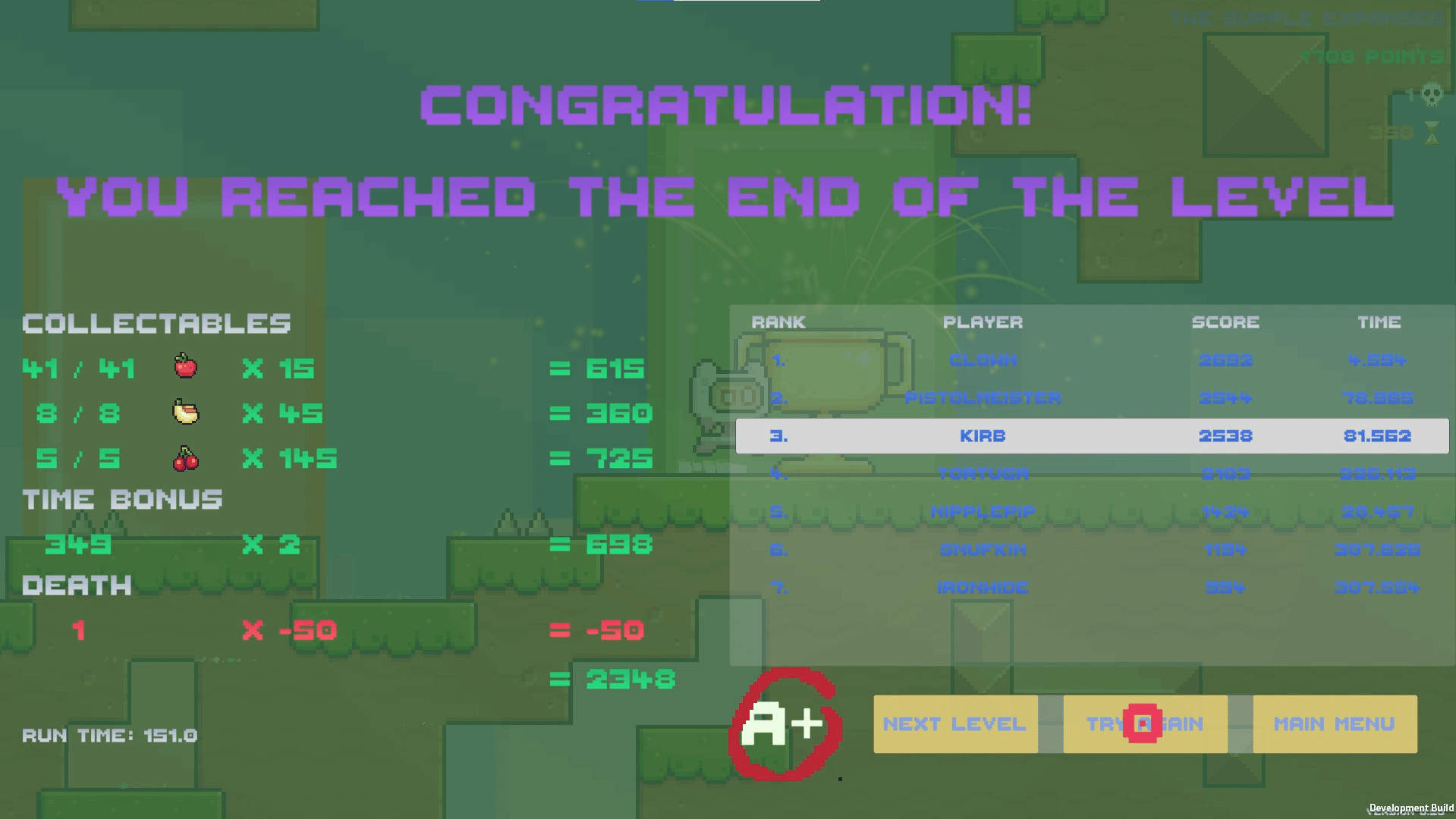 Delicious Fruitworld is a classic jump 'n' run platformer where the goal is to complete each level with as many points as possible.Points are awarded for fruits distributed in the world and for a good time in which the level was passed. Share your score!