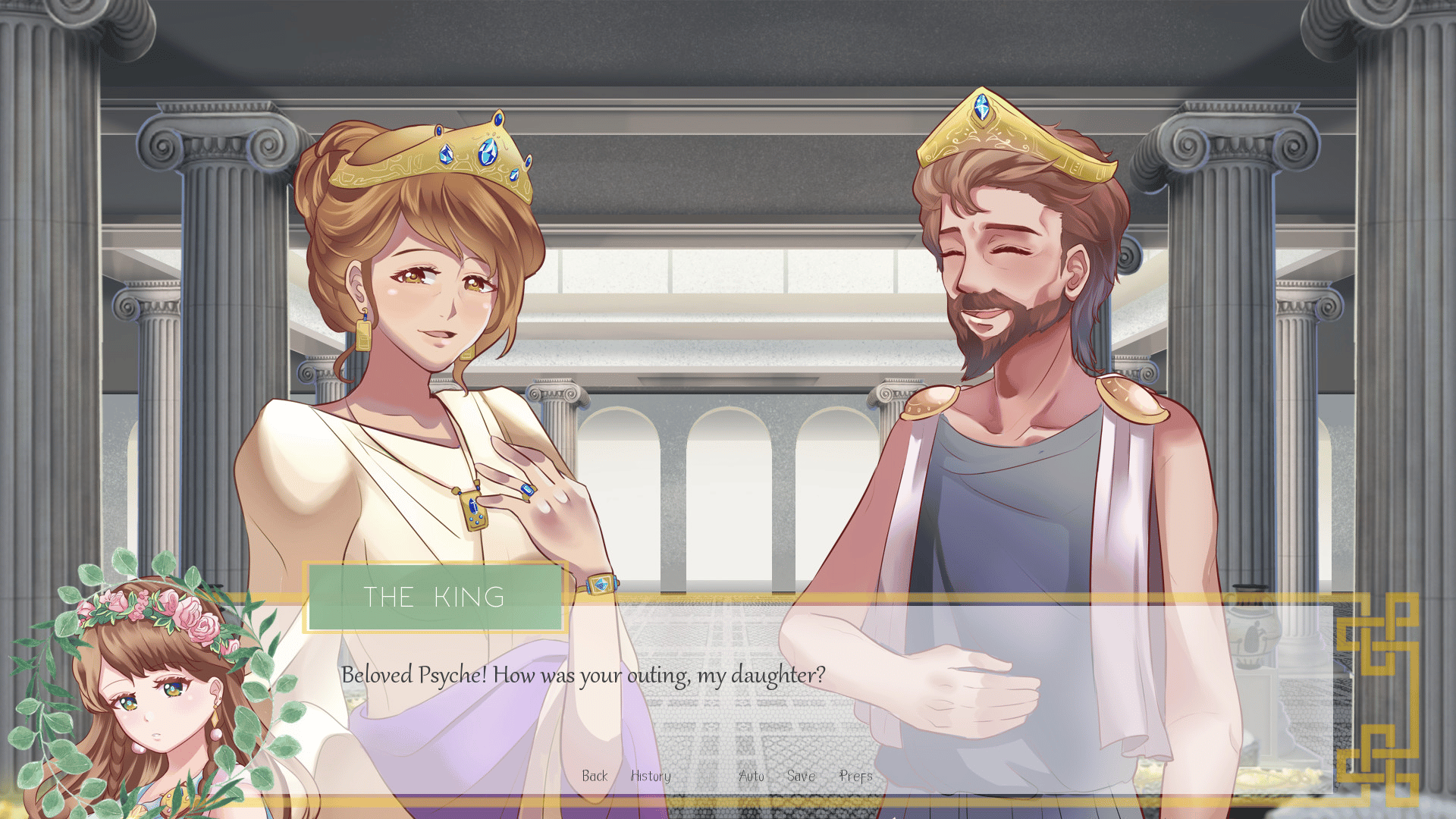 A romance otome visual novel set in Ancient Greece that follows the myth of Psyche as she falls in love with her mysterious husband. Navigate fickle gods and Psyche's looming tragic fate by making meaningful choices that affect the story and its ending.