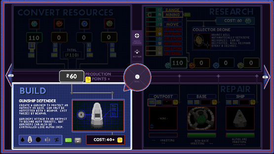 Alpha One is a turn based strategy game with real time encounters. Each action level is a turn in a strategic conflict to survive or defeat your opponent. Race to collect resources, acquire upgrades, expand territory and economy, build defenses, all to defeat the enemy or escape home.