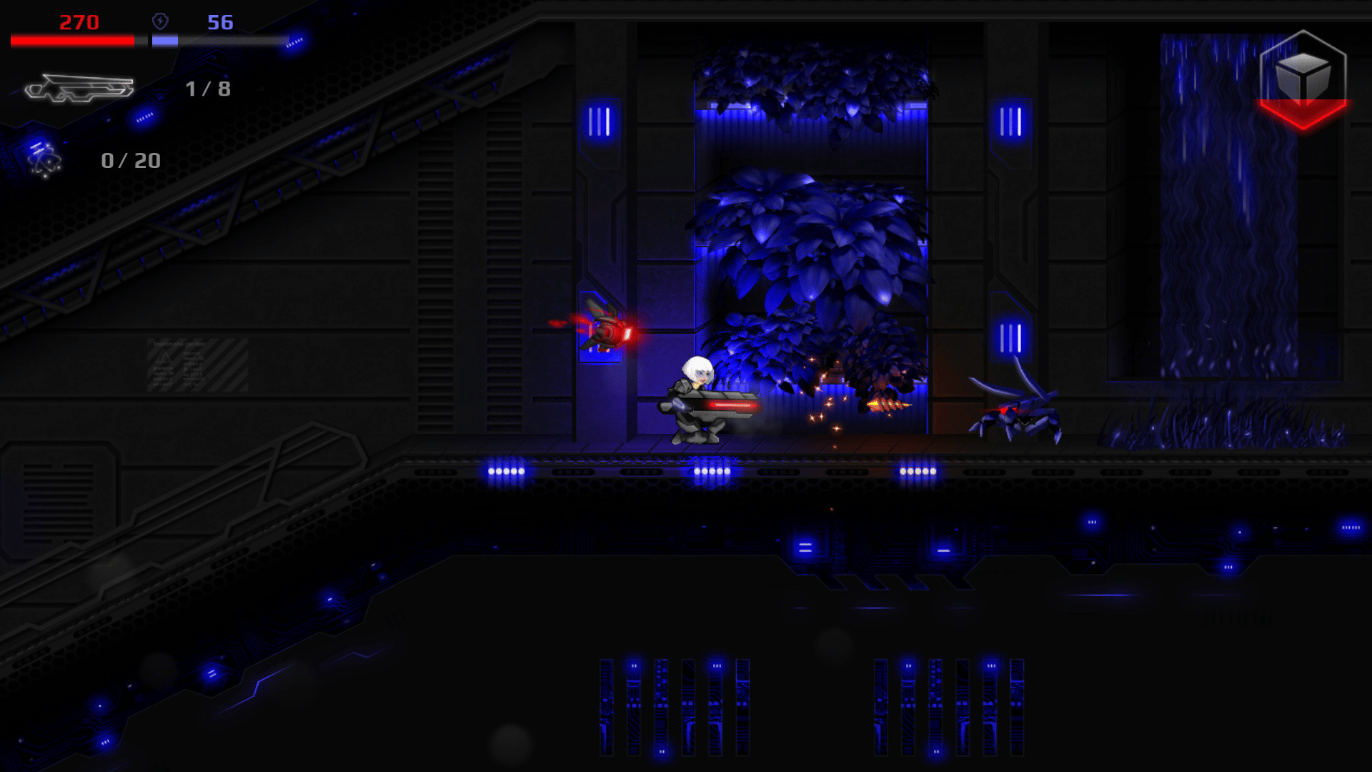 Science fiction 2D shooter with platformer and metroidvania elements. Players will have to explore a huge research complex consisting of nonlinear levels, which is crowded with robots