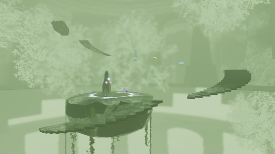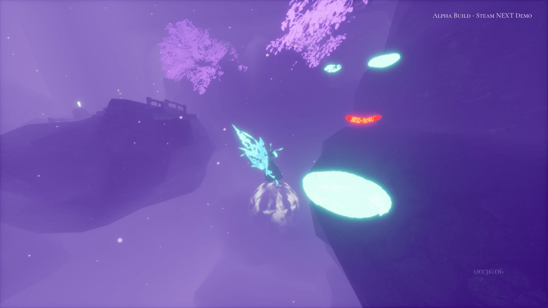 Emanate is a single-level, vertical world filled with jumping patterns made up of various platforming mechanics. The most common of which are the orange/red bounce pads, purple wall-jump pads, and the fading platforms, that vanish from under your feet after a very short amount of time. Combining these simple mechanics urges you to keep moving forward, making for some incredibly challenging and intense platforming gameplay.