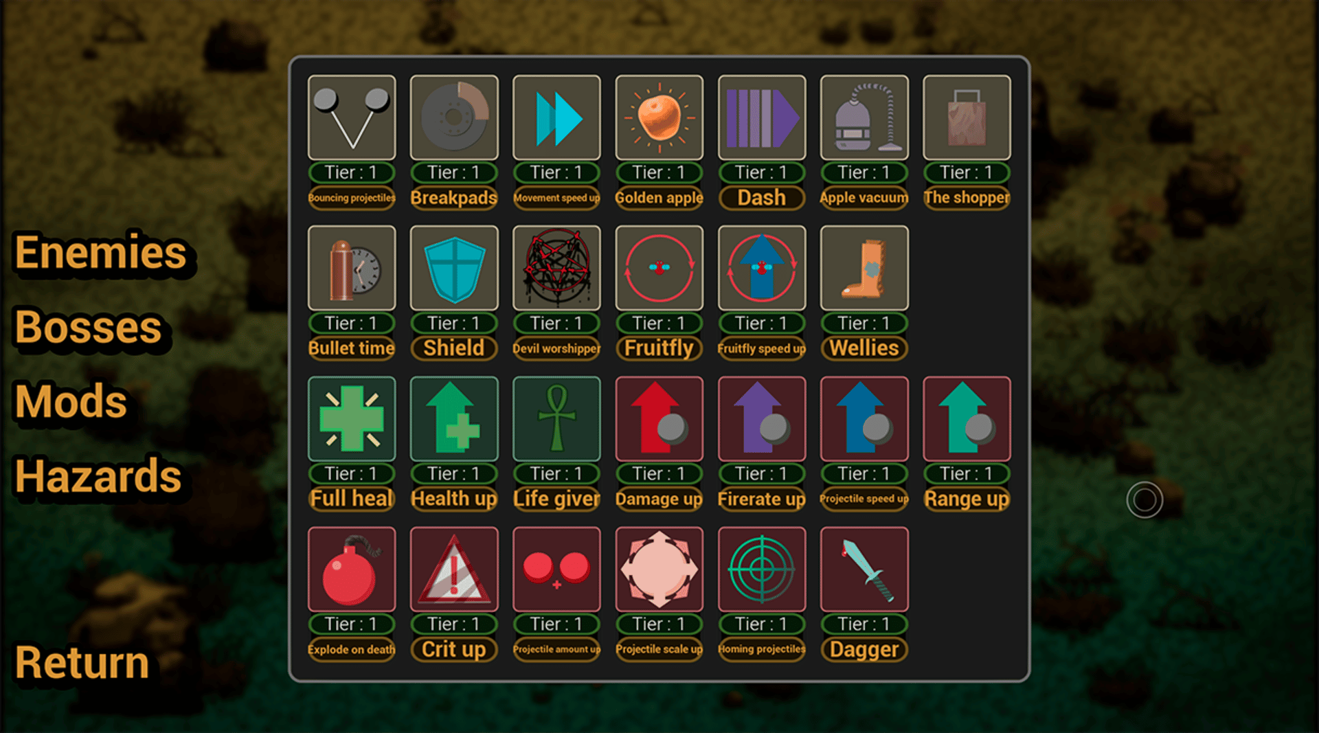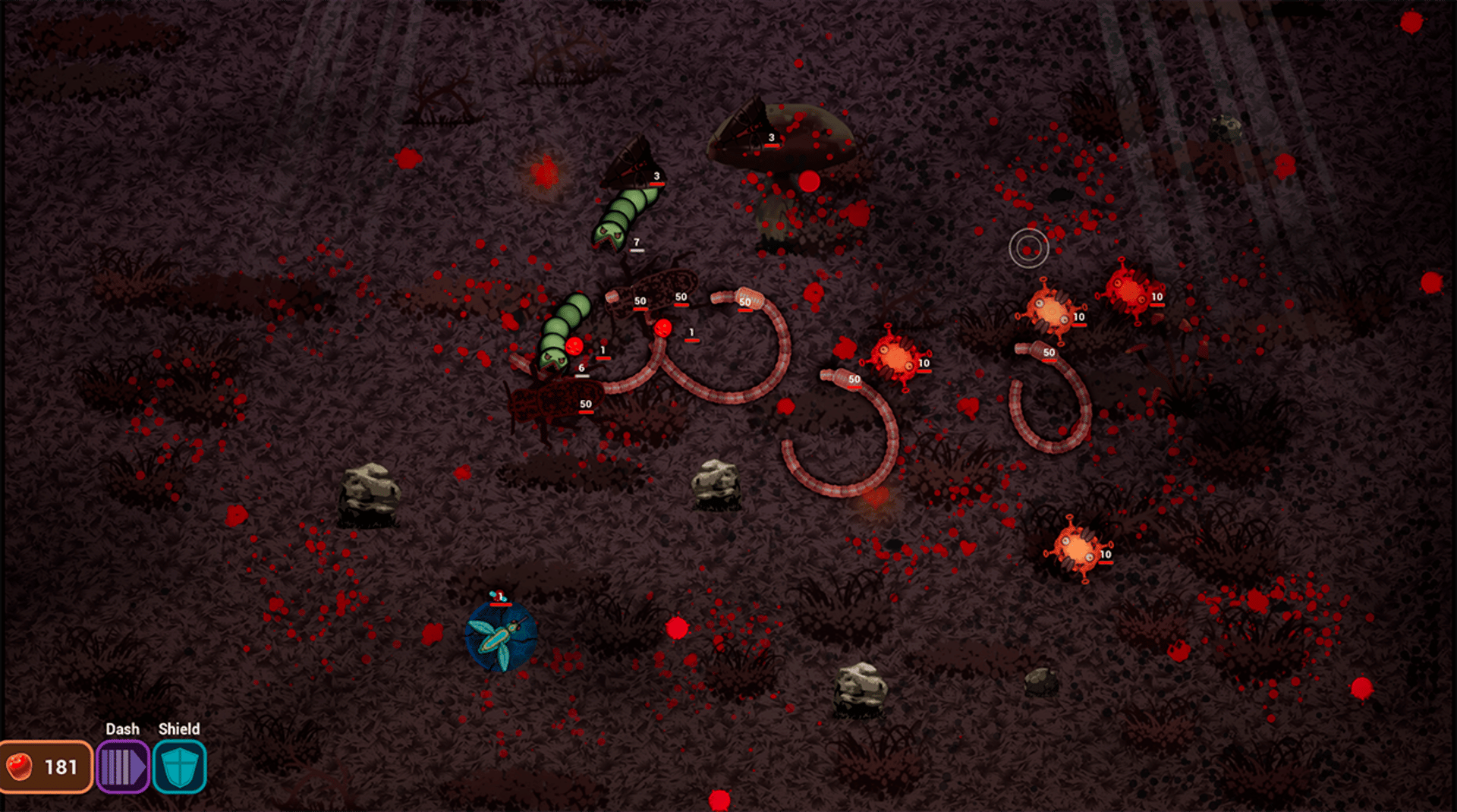 In the bush is a casual rougelike where you play as a fly who needs to clear the stage from other insects to proceed to the next stage. At the start of each stage you get to select a mod that makes you stronger.