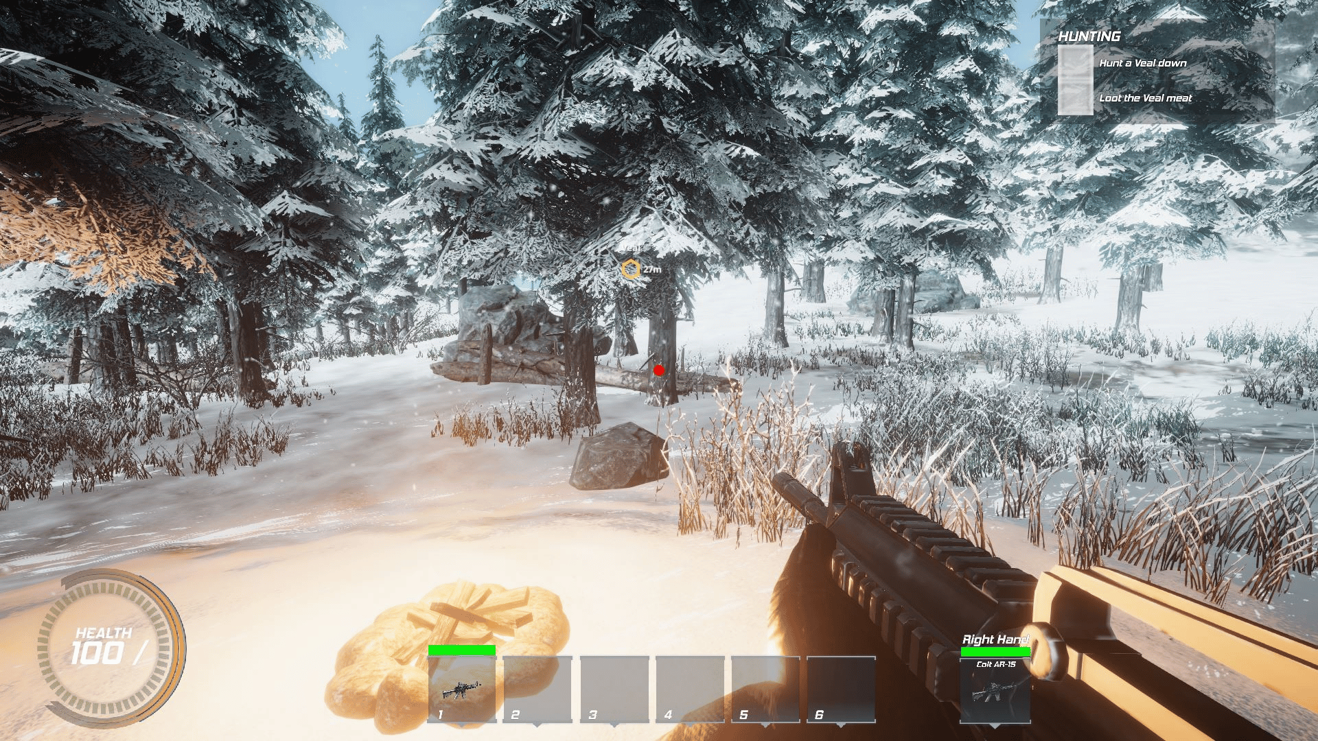A recon mission goes bad, and you are the only one who survive an enemy attack, you are left alone to survive in a harsh ambient.