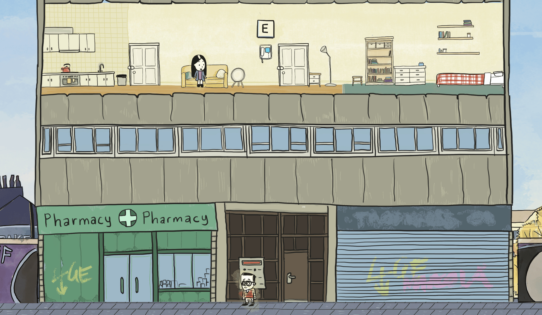 Cracks is a single player side-scrolling platformer following the couple Liam and Lana, as they navigate the highs, lows and struggles of their relationship. Their relationship is part of the game, where their level of cooperation depends on how connected they are.