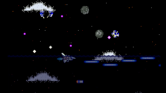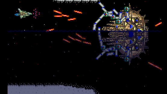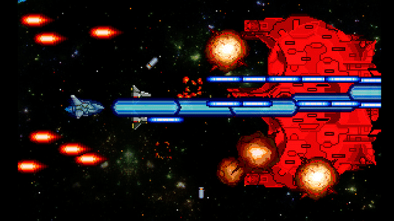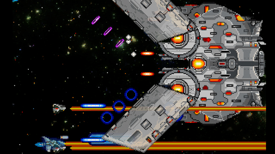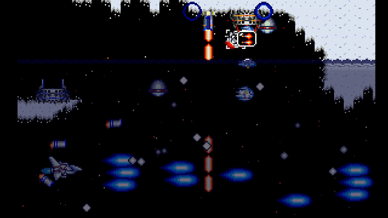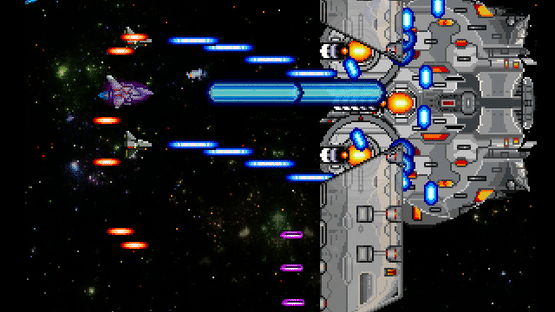 This game, "Fortress Defender", is a side-scrolling power-up shooting game with an 80's flavor. Defeat the enemies that appear one after another, dodge their attacks, and aim for the boss that lurks in the depths of the stage. There are a total of eight stages with various tricks and bosses.