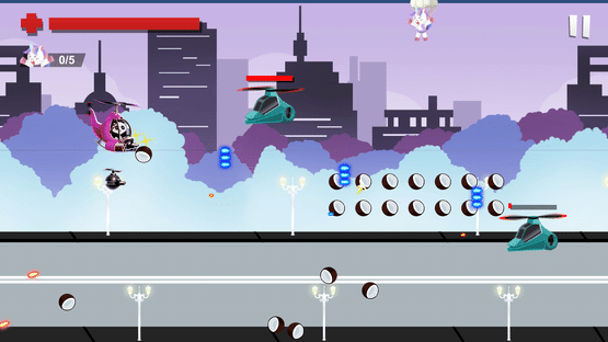 Is a sidescroller game in which you need to fly a helicopter piloted by a cute panda, and save falling unicorns from evil opponents