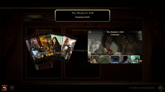 The Shadow's Fall is the first expansion for Lord of the Rings: Adventure Card Game. Coming with 4 new Heroes packs and continuing the Shadow's Reach storyline. Dive further into Bilbo's journey !