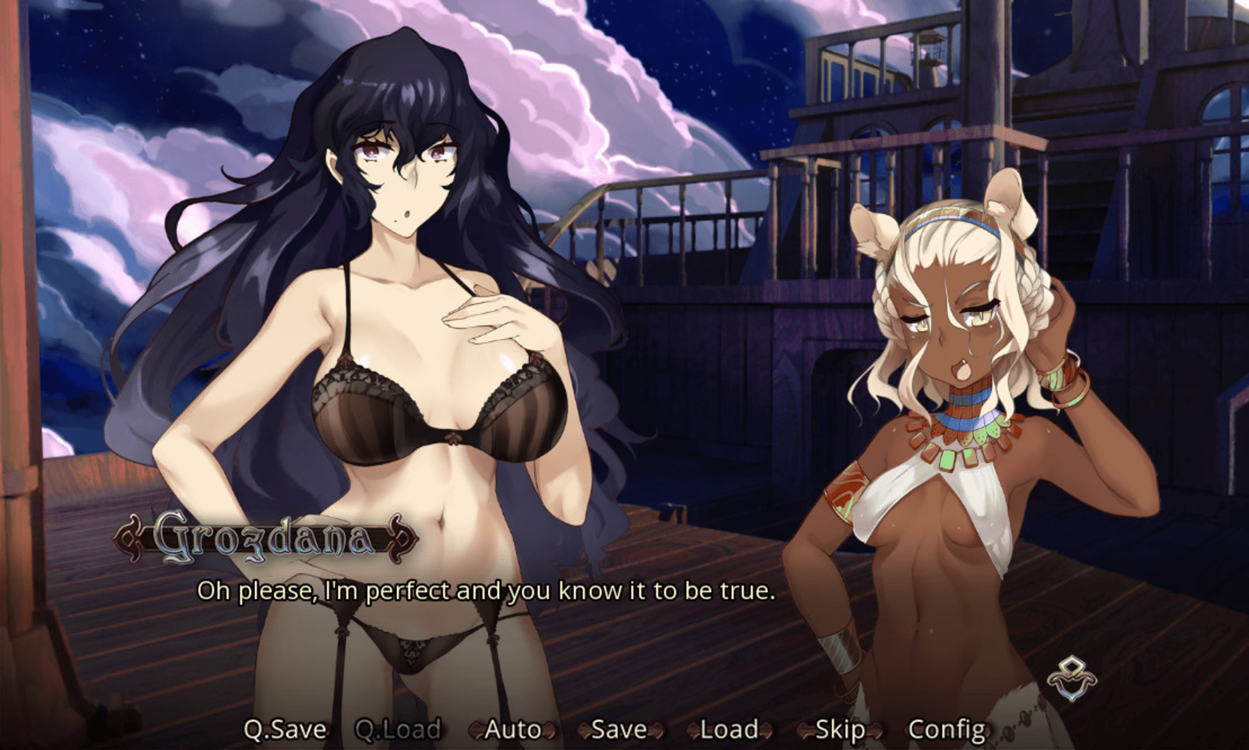 Grozdana is an adorable Sphinx-girl, and the dethroned Princess of an mysterious land... she also happens to be an immodest Tsundere, and terrifically lazy. What she wants out of life are as much a mystery to her as they are to the Captain.