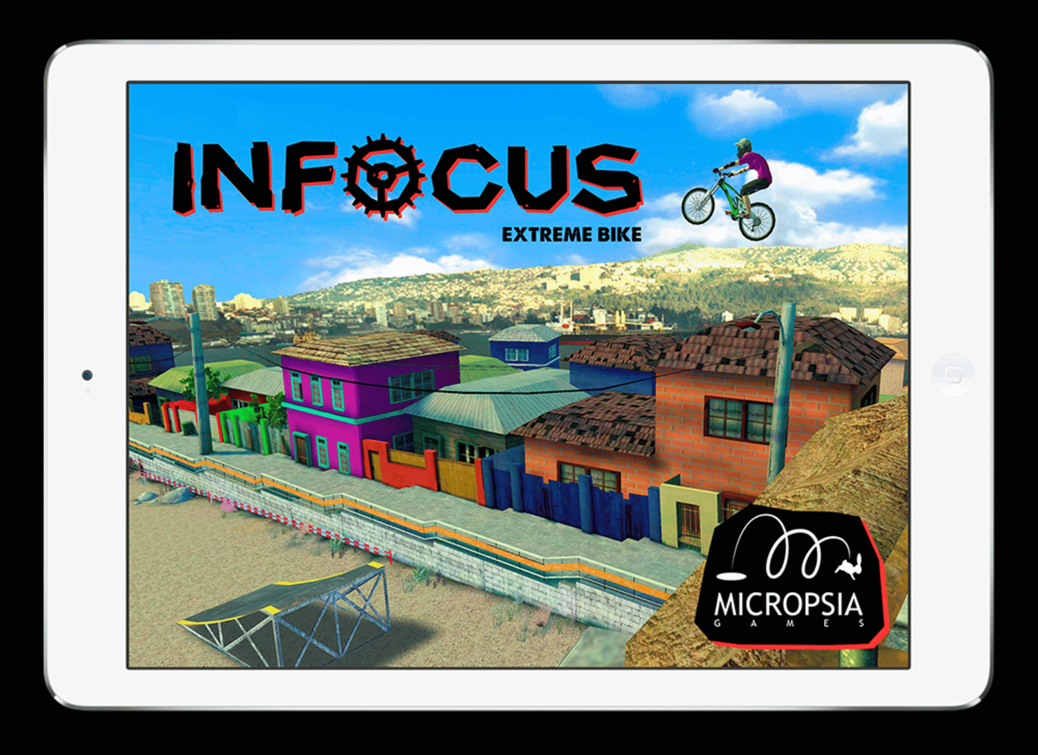 INFOCUS Extreme Bike is an arcade first person mountain bike downhill videogame, with challenging circuits full of speed inspired by real competitions and locations like Chile, Mexico and Bolivia. You must descend and maneuver your bike at full speed trying to avoid obstacles using the device’s gyroscope to achieve the best time you can.