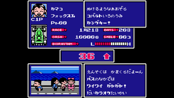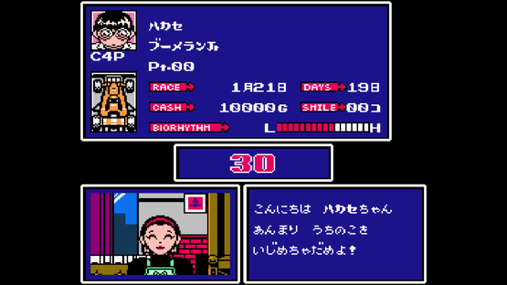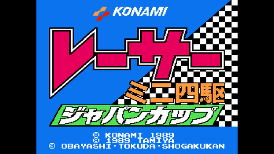 A board game/racing game hybrid based on a miniature RC car toyline. It was developed and published by Konami exclusively for the Japanese Famicom. Racer Mini Yonku: Japan Cup ("Yonku" refers to four-wheel drive vehicles) is a board game with racing game sections, in that the player has to construct their own RC 4WD car and then race them against their CPU opponents in various events, often taking terrain handling into account. It was based on the then-popular mini RC car toy fad in Japan. The title screen credits Tamiya, a Japanese toy manufacturer that focuses on model kits and RC vehicles, and their logo frequently appears in-game. The game was developed by Konami for the Famicom, and was never released outside of Japan. The player and the CPU opponents take turns moving over a board and acquiring money and parts for their RC car. Money collected can also be spent on new parts. The players' vehicles then race, an automatic process, with the one with the best upgrades usually coming out on top.
