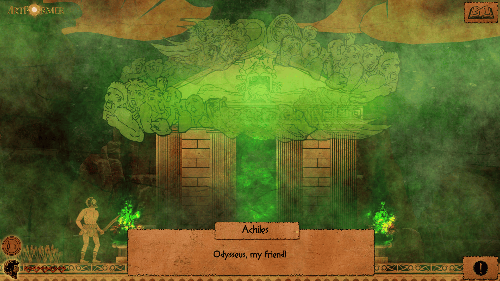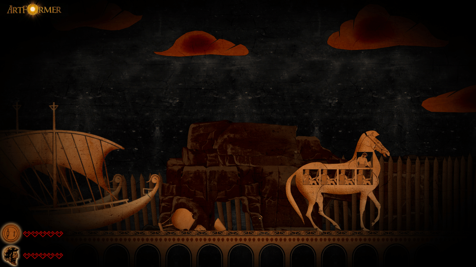 ArtFormer is a story-driven cinematic platformer with RPG elements. This Indie game project consists of four challenging story chapters each with a unique hero, different gameplay, and original art style based on existing fragments of human history: Cave paintings, Egyptian papyrus, Greek pottery, and Roman mosaic. The characters and stories seen through the eyes of ancient artists from different times will come to life before your eyes. Four chapters of ArtFormer each with a unique hero, storyline, and new mechanics! This isn't just a humble tribute to the cinematic platformers (Prince of Persia, Another World, Oddworld, Flashback...), but a proud continuation of their gaming legacies. ArtFormer's game controls are specially designed and adapted to enable gamers with reduced mobility or other impairment to one upper limb. Yes, this means that the game can be controlled with one hand. However, you cannot expect a "standard" control setup, but a slightly different control scheme than that used by other similar games. Please bear that in mind while playing.