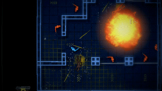 You play as QA-Bot1986, a weapon quality assurance robot working for a big and shady corporation called SHOOTOUT INC. An unexpected glitch occured during your manufacturing, giving your cyber brain the ability to process data at 5861% higher speed than ordinary bots, allowing you to alter your perception of time and make it advance only when you move.