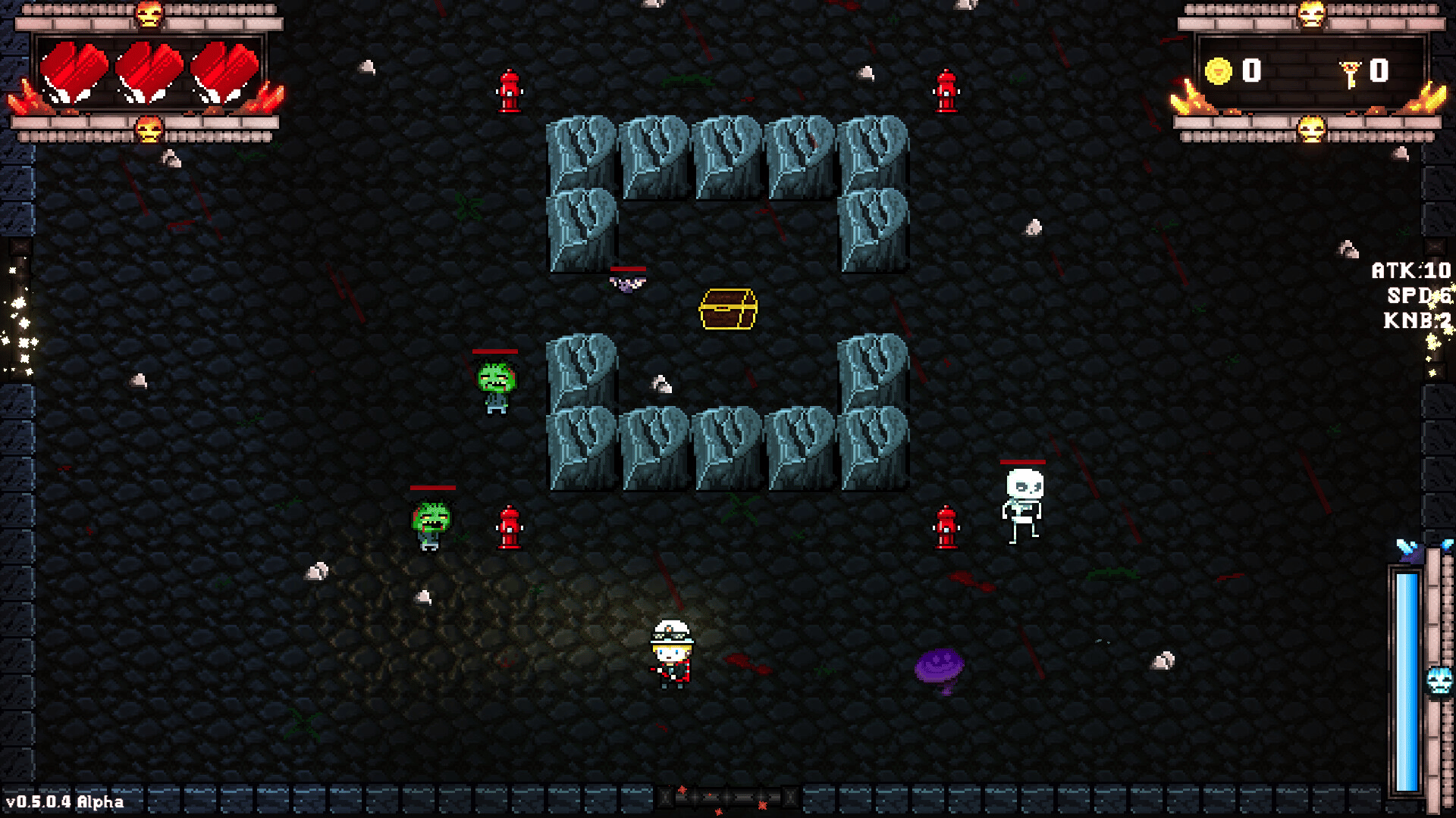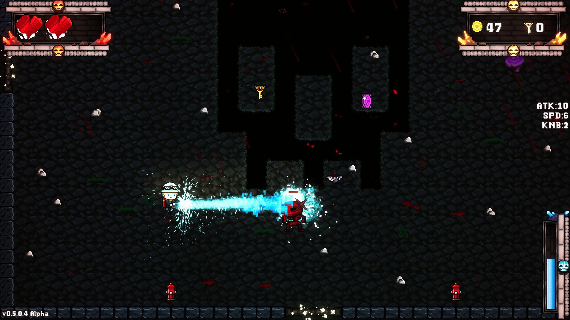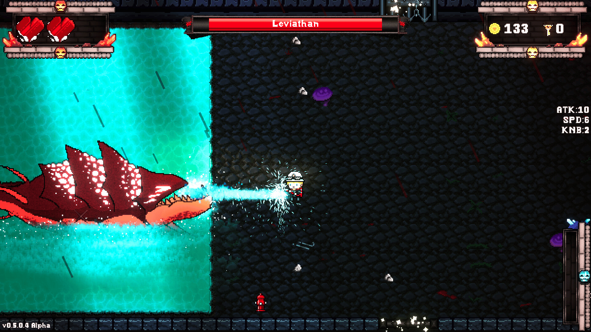 In No Water in Hell, you play as a firefighter through the forces of hell with nothing but a firehose as you spray down demons on your trek throughout the underworld. You'll face monsters of all shapes, sizes, and varieties, each with their own powers and abilities which may make your time in Hell, well....Hell. No Water in Hell is a 2D roguelite which is designed in the same vein of games such as The Legend of Zelda, Enter the Gungeon, and Crypt of the Necrodancer which features top-down gameplay and 4-directional movement.
