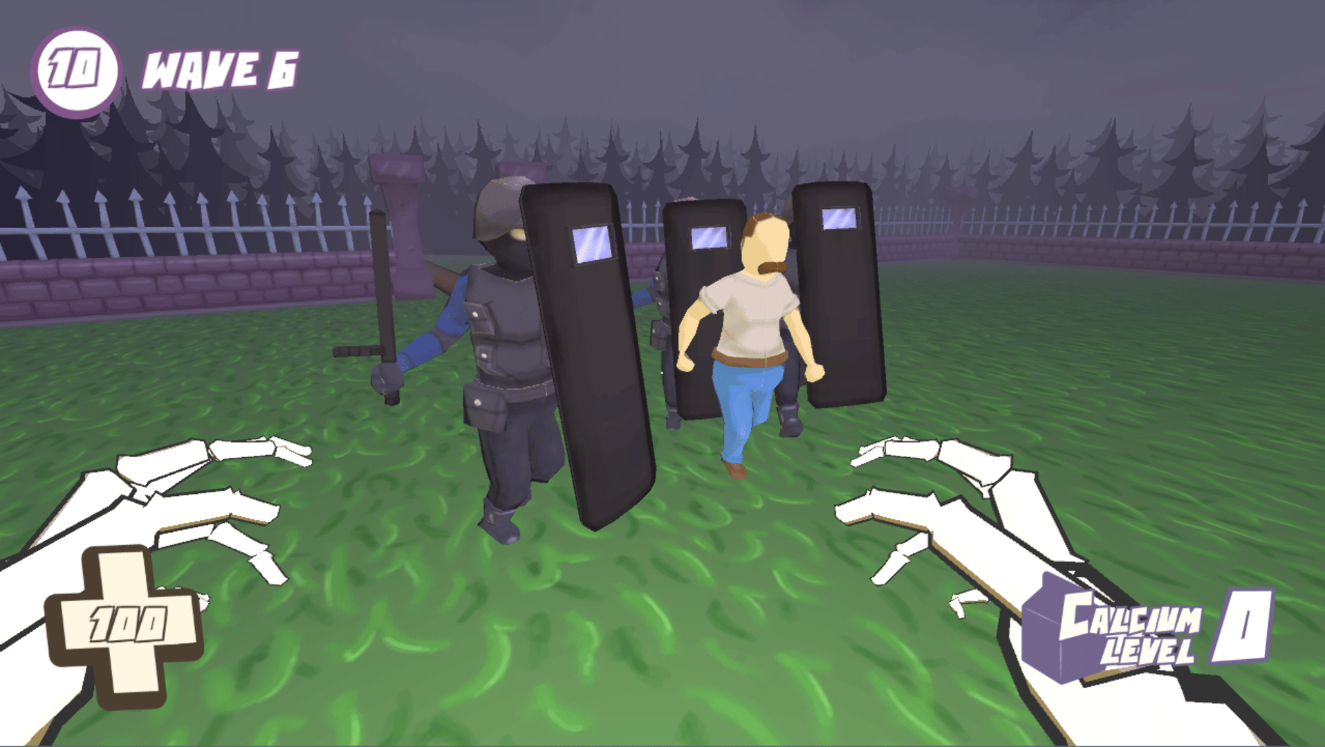 It's Halloween and the local hooligans have nothing better to do than to vandalize your graveyard! You (and perhaps your boney friends) won't stand for it. Hop, Doot, and Smack your way through waves of ornery kids and their agitated parents as you try to protect your spooky home!