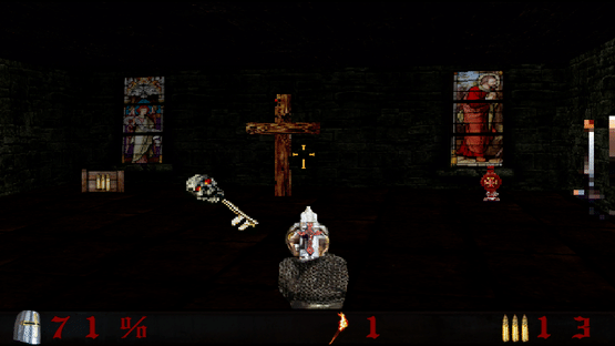 A gun wielding Templar purifies a forsaken church.