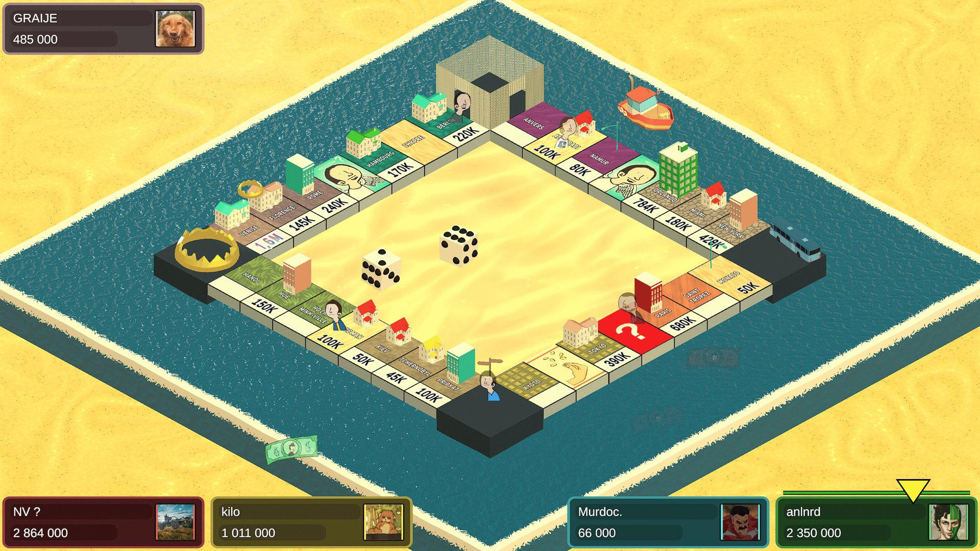 "Gromopoli" is an online board game centered around the ownership of properties: Buy as many properties as you can to get closer to victory and make your enemies go bankrupt, play with a total of 8 players in a chaotic land ownership war, fight with teams going from 4 team of 2 players to 2 teams of 4 players! Enjoy the various board skins and chose to play on varying board sizes for shorter or longer games!
