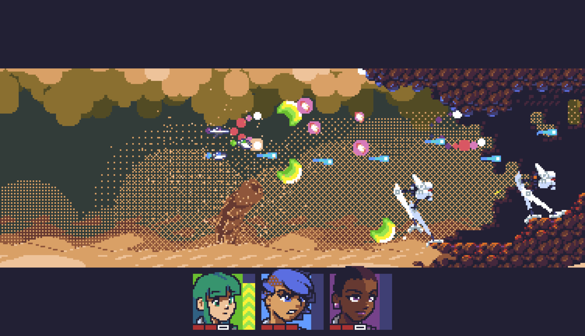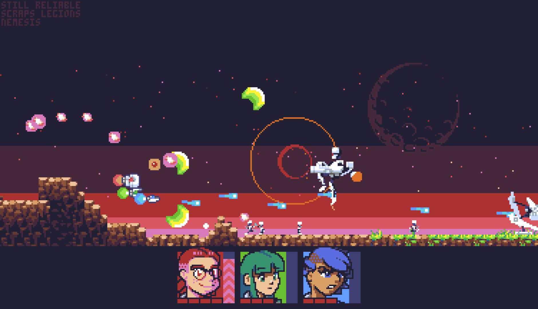 Make up your squads out of 9 unique ships and save 3 planets from hordes of robots in this colorful horizontal shoot-em-up! Each of the 9 pilots in the Spectrum Forces has unique capacities. It's up to you to select the right ones for the right job. You've been commissioned to clear 3 planets from the residing Abandonware. Try your best to not lose anyone while doing so!