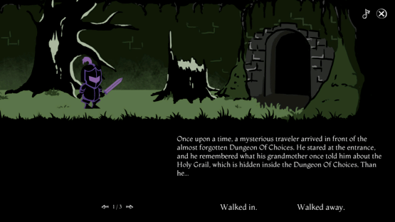 Dungeon of Choices is a short game based on old gamebooks. You are playing as a mighty knight who goes into the dungeon to get the holy grail. But your journey won't be easy. There's a lot of danger and traps on your way. Of course, not all of the things are bad, but be prepared for hard trials! The end of your adventure depends just on your decisions trough all playtime.