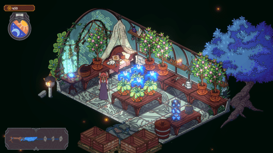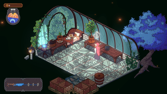 A greenhouse simulation in a magical setting.
