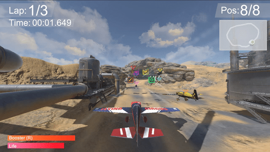 Air Racers is an arcade air racing game with different game modes, power ups and splitscreen multiplayer. Five different tracks with different game modes and difficulties make your races different. Race Solo in Time Trail mode and hunt for the best track time, go into the championships solo or splitscreen or just have an arcade race against the AI solo or with a friend.