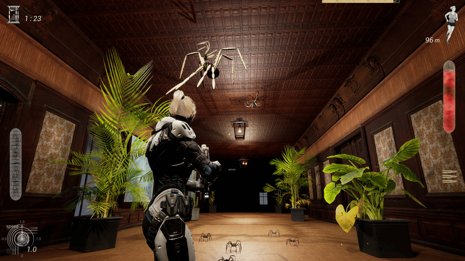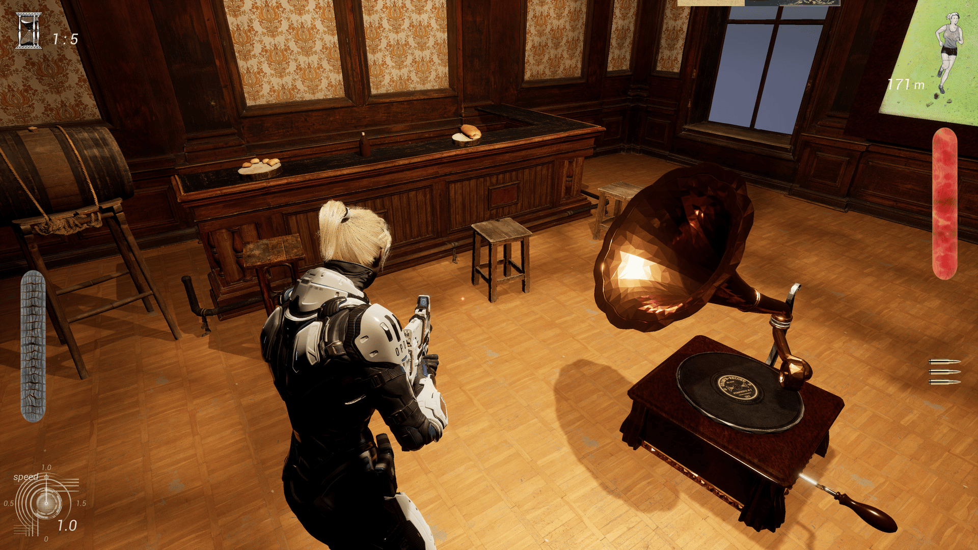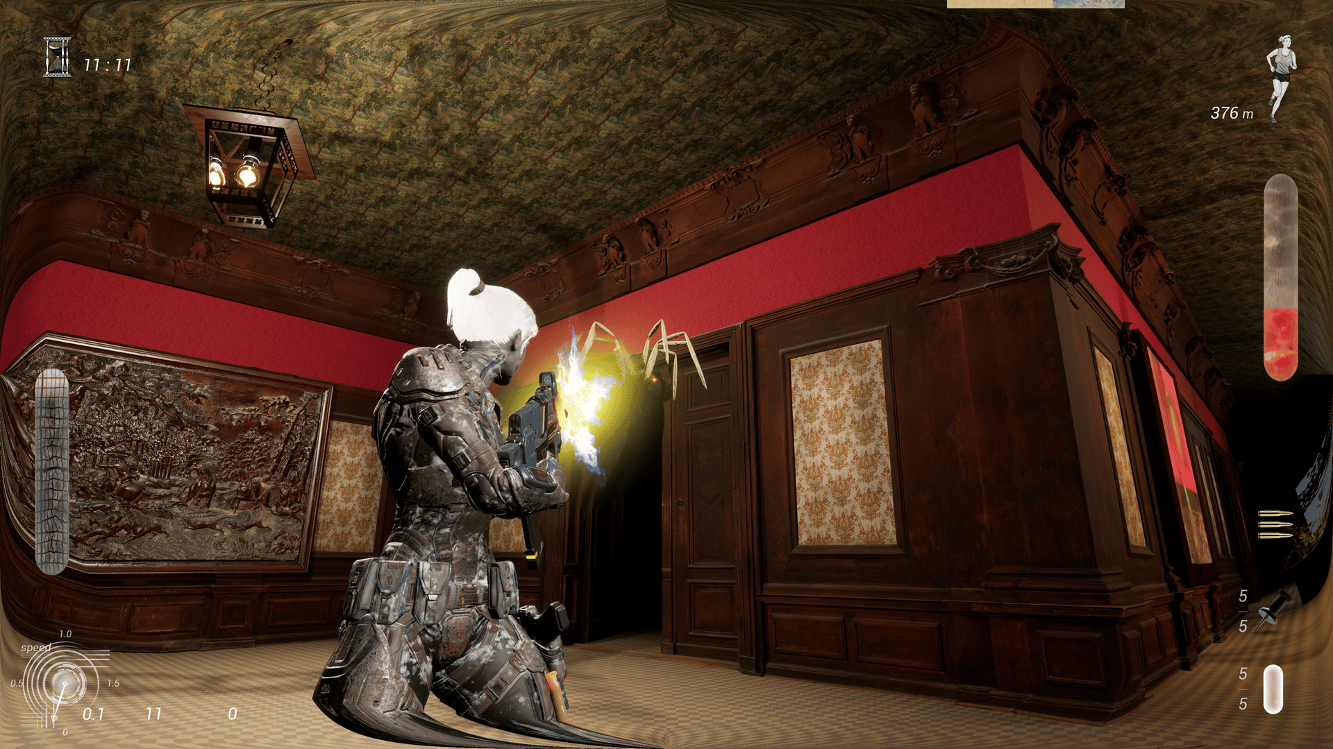 'Epic Maze' is a third-person shooter game in which you must find your way to the gramophone in a procedurally generated 3d maze by following its music, turn it off, and then return. Trick is to remember your path, do not get lost in witches’ mansion.
