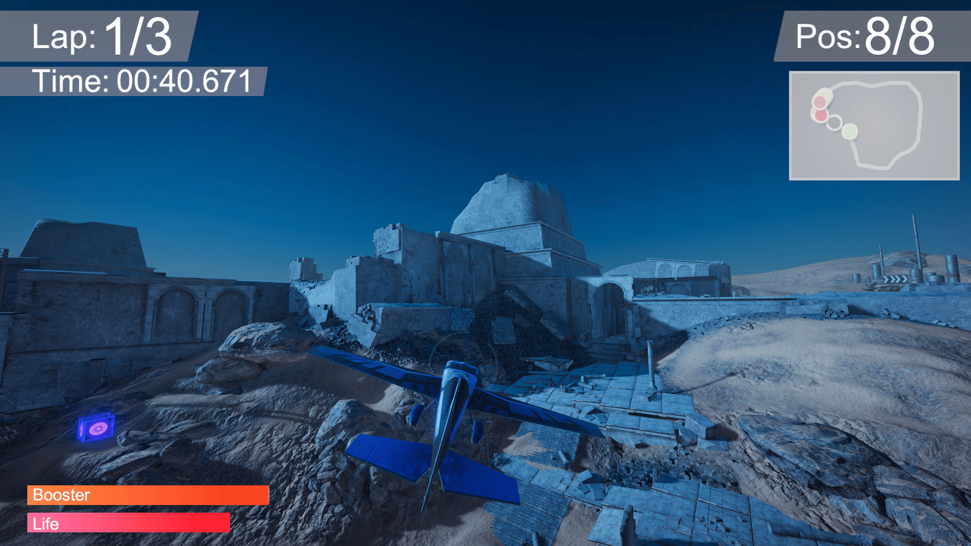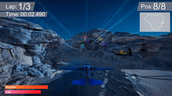 Fasten your seatbelts and get ready for this realistic arcade styled flight game. Fly by yourself or in offline versus mode. Unlock new items and tracks as you progress. Play with your gamepad or your keyboard. Race with your opponents with weapons and shields. Follow up yourself on the leaderboard.