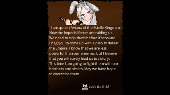 This game is a turn-based strategy game. You will be playing the role of Lord Lyle, the planner. You will have to plan a battle against the empire to save the Estelle Kingdom. Don't worry, your assistant is queen Aviana and her warriors. You can order them freely.