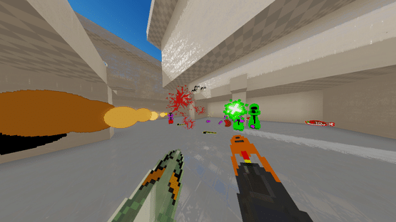 V.R.G. is a FPS cross between a retro-style and a modern-style , Defeat enemies and get combos to improve operability, and eat scatter pieces of meat to recover.