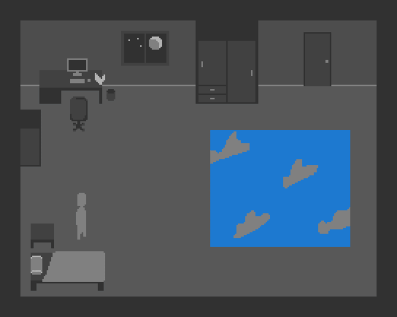 A game that takes place in a room. Also you can use Shift to go faster.