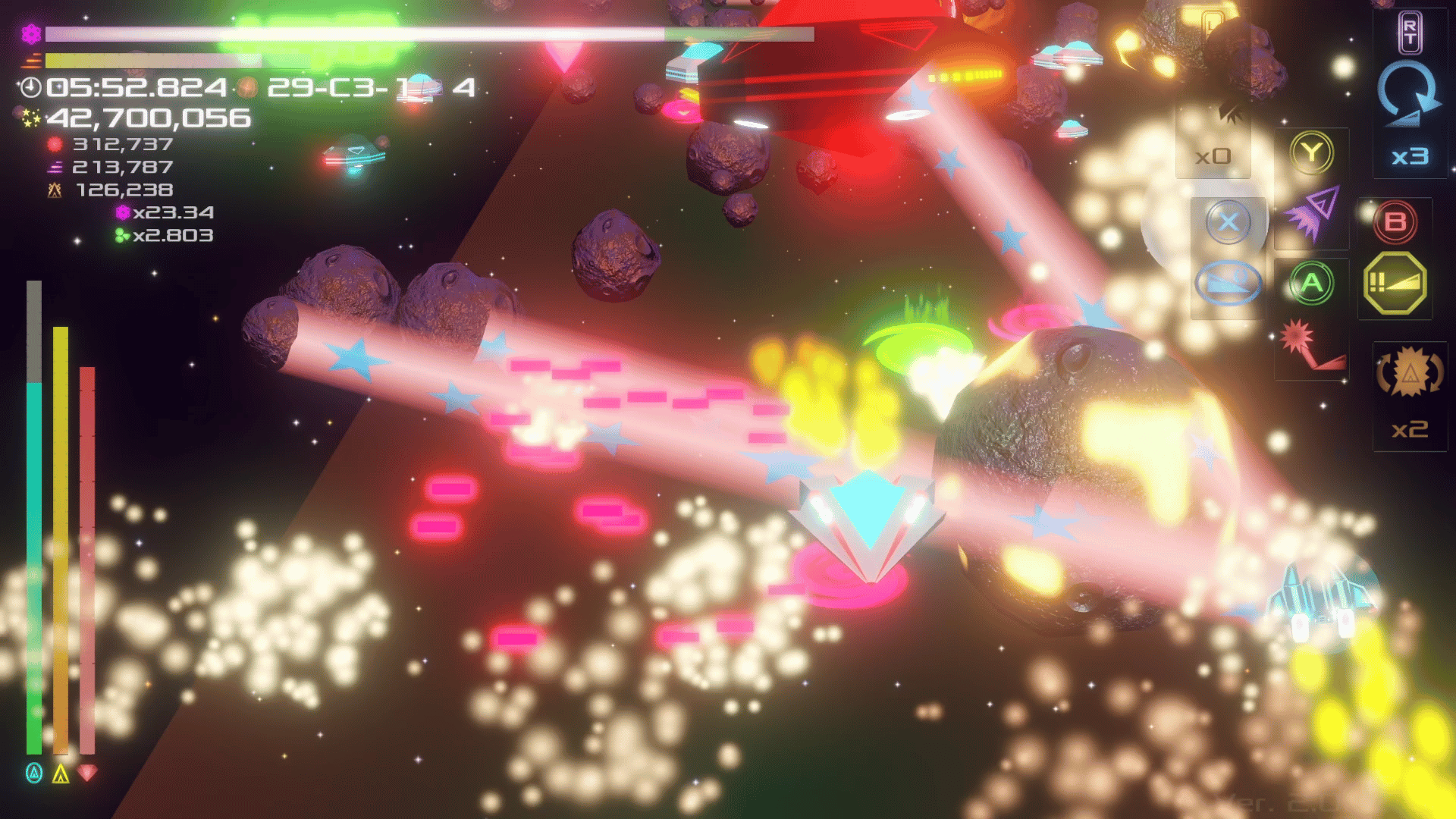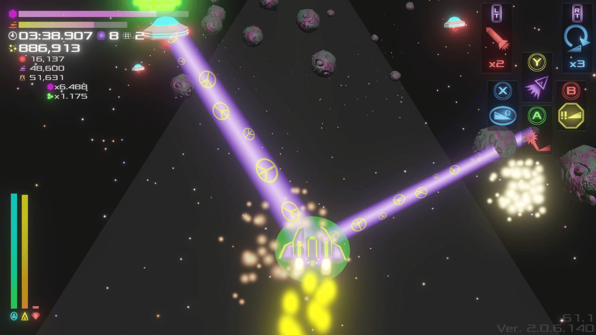 Intense and exciting arcade spaceflight through dense fields of asteroids, hostile ships, and other obstacles.