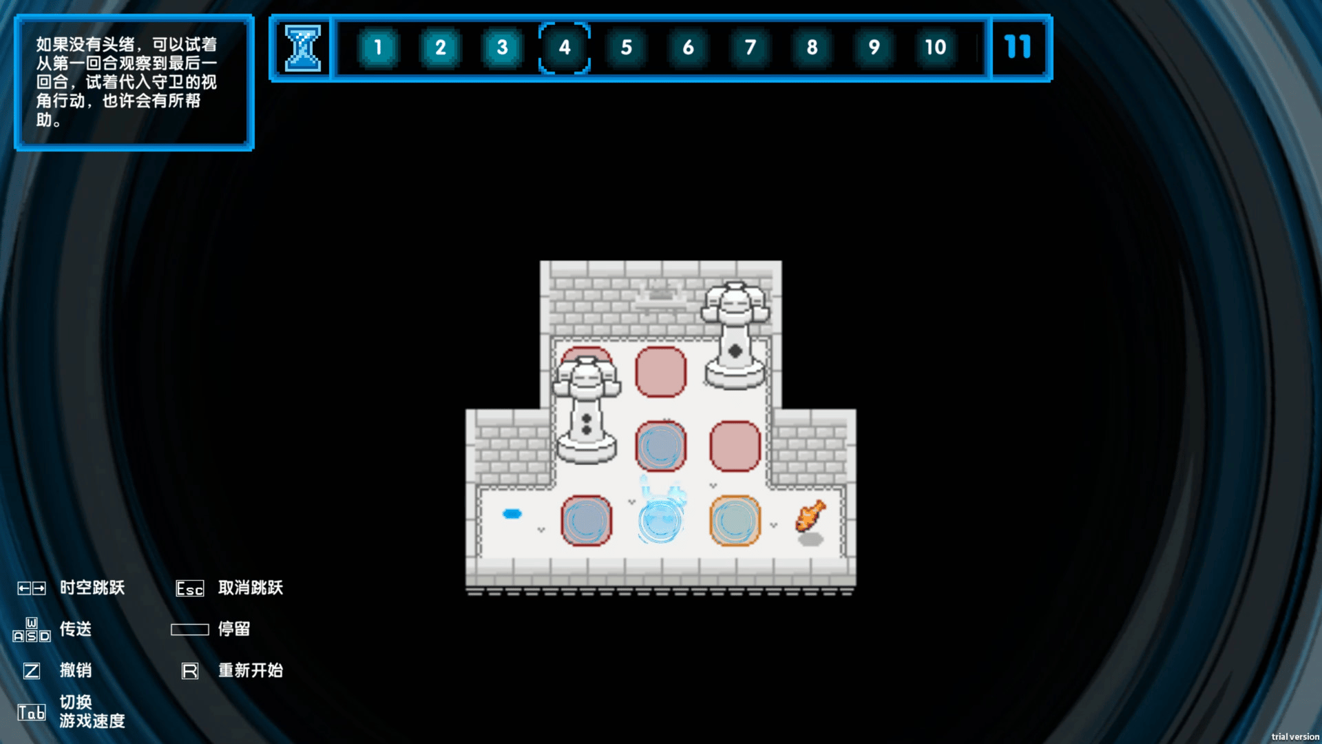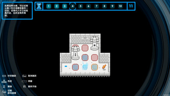 Use four-dimensional space-time thinking and time travel ability to eat the fish within the specified time and return to the original position, while avoiding the guards' pursuit.
