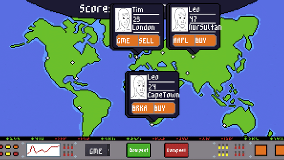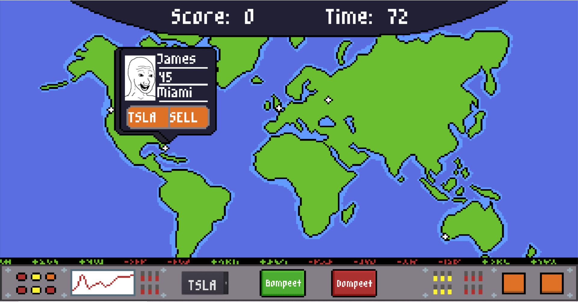 Ever wanted to manipulate the world financial markets? Well now you can! Fight against the Wojaks of the world as you manipulate the world markets and destroy their savings. Carefully pick the correct stock and then choose whether to "Bompeet" or "Dompeet"