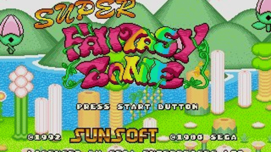 Super Fantasy Zone is an entry in the Fantasy Zone series of games, and was initially released in 1992 for the Sega Mega Drive. Unlike previous outings, Super Fantasy Zone was handled entirely by Sunsoft (under license from Sega), who had previously brought Fantasy Zone and Fantasy Zone II to the Nintendo Famicom. For unknown reasons the game was not released in cartridge form in North America, but is currently unconfirmed as being a Sega Channel title. It eventually saw a more widespread release as part of the Wii's Virtual Console service.