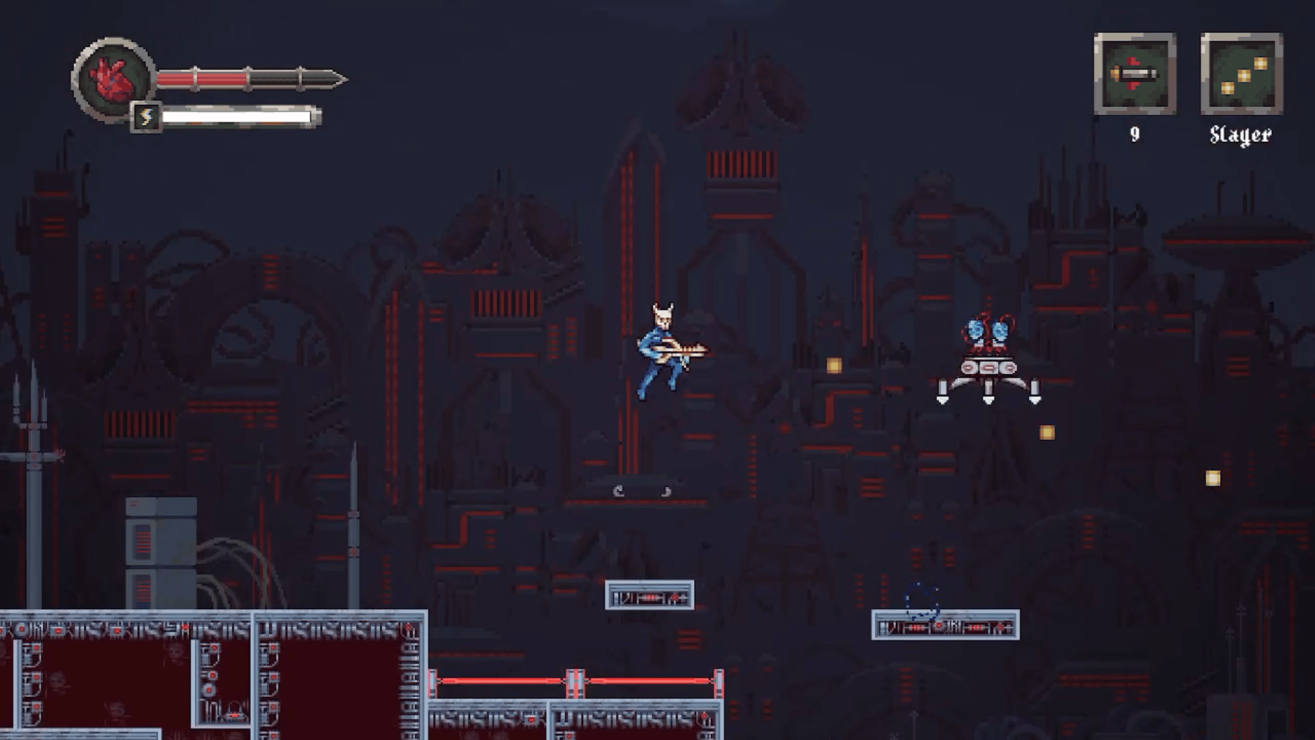 Dive into a world of eldritch horrors, in this 2D side-scrolling shooting action platformer. Platform your way across surreal & mysterious terrains while blasting through a multitude of strange foes. Amazing background soundtracks to assist you in your journey.