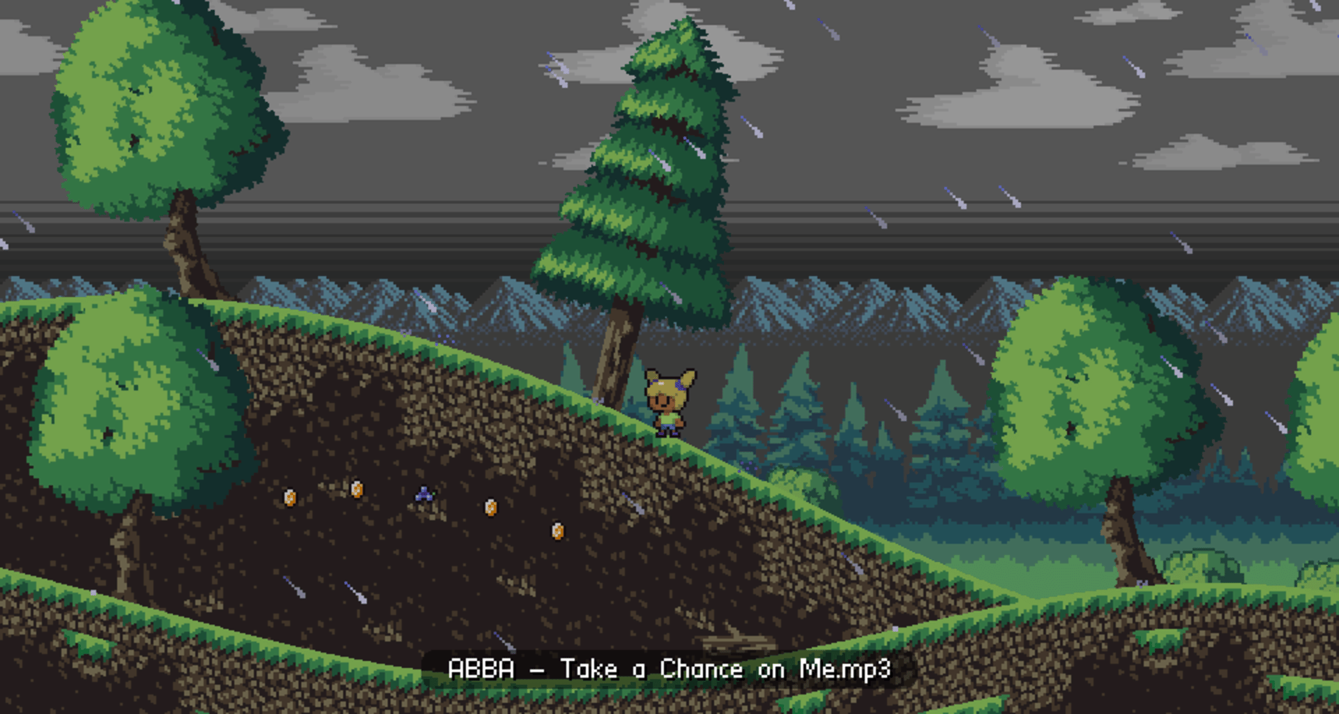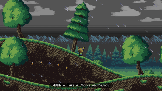 Spectrum Valley is an interactive experience that is part-exploration game and part music visualizer. Take control of a boy or girl character and run and jump around in several biomes, collecting coins or food bonuses as the world moves and reacts dynamically to an audio file on your system; affecting the ground beneath your feet, some objects, and even the weather.