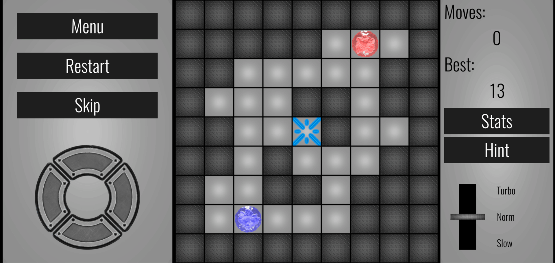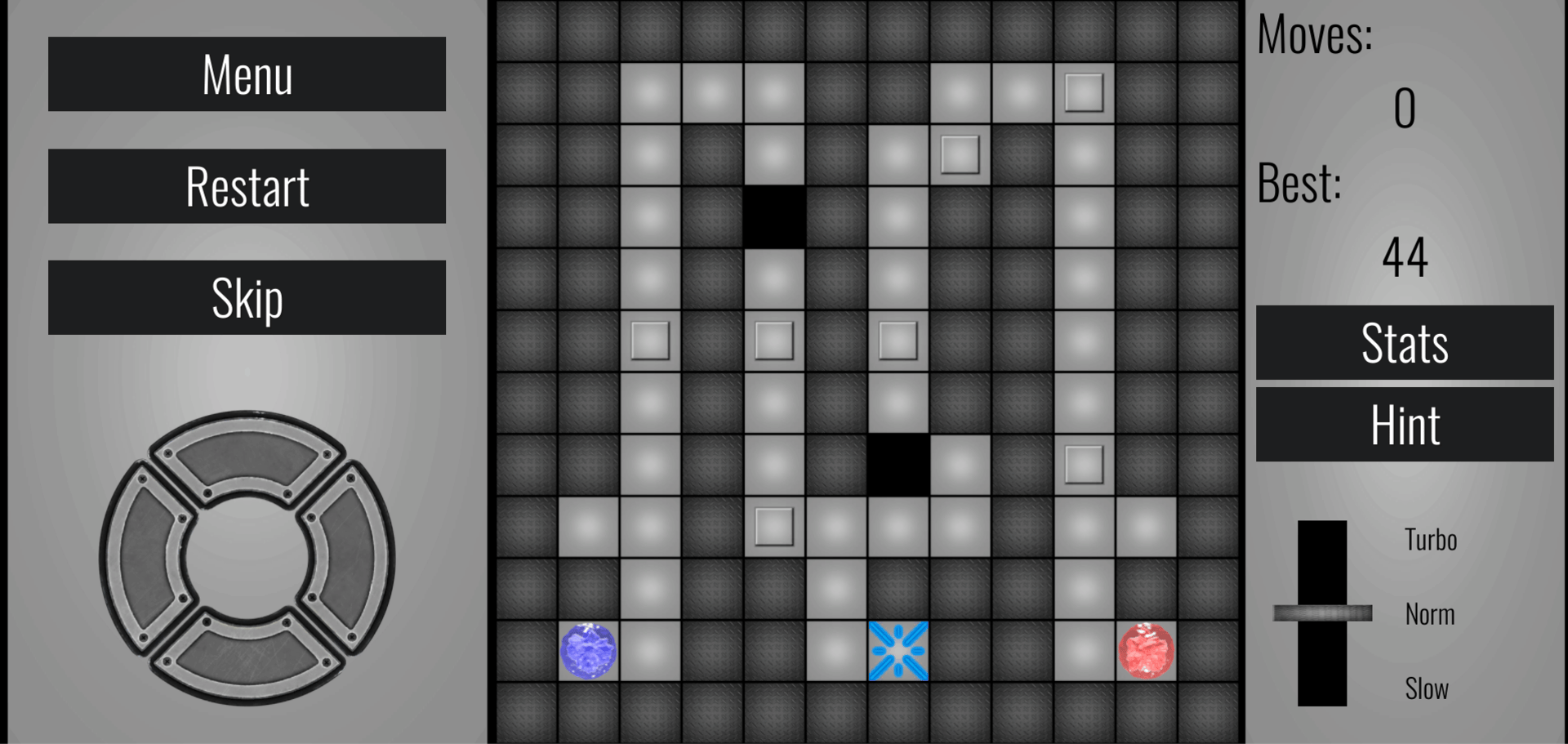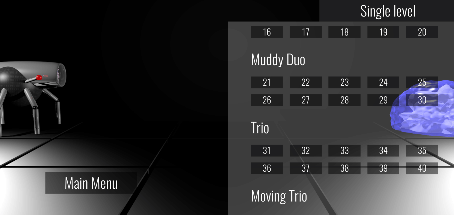 Free The Blobs is an arcade puzzle game with a novel control mechanic. You take control of the blobs, a new life form created within the evil lair of the robot overlords. You must help them escape by guiding them to the exit of each level. The main feature of the game is that all the blobs move together – their movement is synchronised. This simple concept presents some interesting problems for the player. Throw in a range of tile types, hazardous puzzles and robotic entities intent on your destruction and you have the ingredients for a challenging and novel puzzle game.