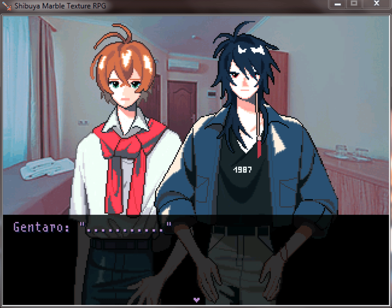 Shibuya Marble Texture RPG is a free fangame of a Hypnosis Mic. In this game you have to find your old enemy - Jakurai and kill him. Before that you must visit the 4 districts of Tokyo.