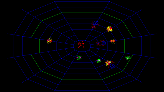 Black Widow is a vector arcade game developed by Atari released in 1982. The player takes the role of a Black widow spider defending a web from invading bugs. The player must move the spider around the web while simultaneously shooting/avoiding various bugs and collecting the bonuses that appear after the enemies are eliminated. The spider is controlled through two joysticks: the left one is used to move the spider, and the right one to control the shot direction.