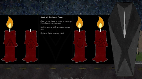The Candles Breathe is a small game about a vampire looking for a victim, in a world where Spirits are very real and the people hold ceremonies twice a year to appease them and protect themselves.