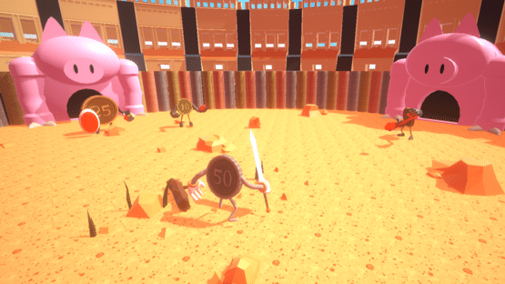 Sobreviva a hordas de moedas enfurecidas e mostre quanto valem 50 centavos neste jogo 3D hack n slash.