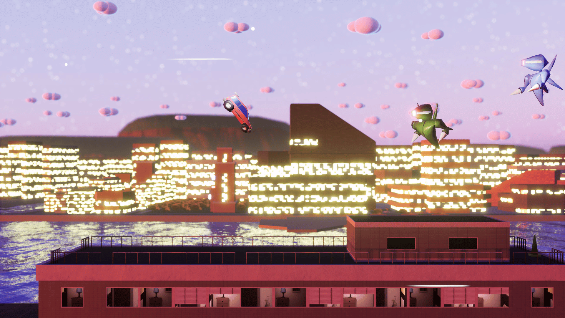 Strive to be the top driver as you combo your way through! Soar across the city's skyline as you leap between rooftops and smash weapon-wielding robots! Scrape your way to the next finish line in this modern golden-age styled arcade platformer.