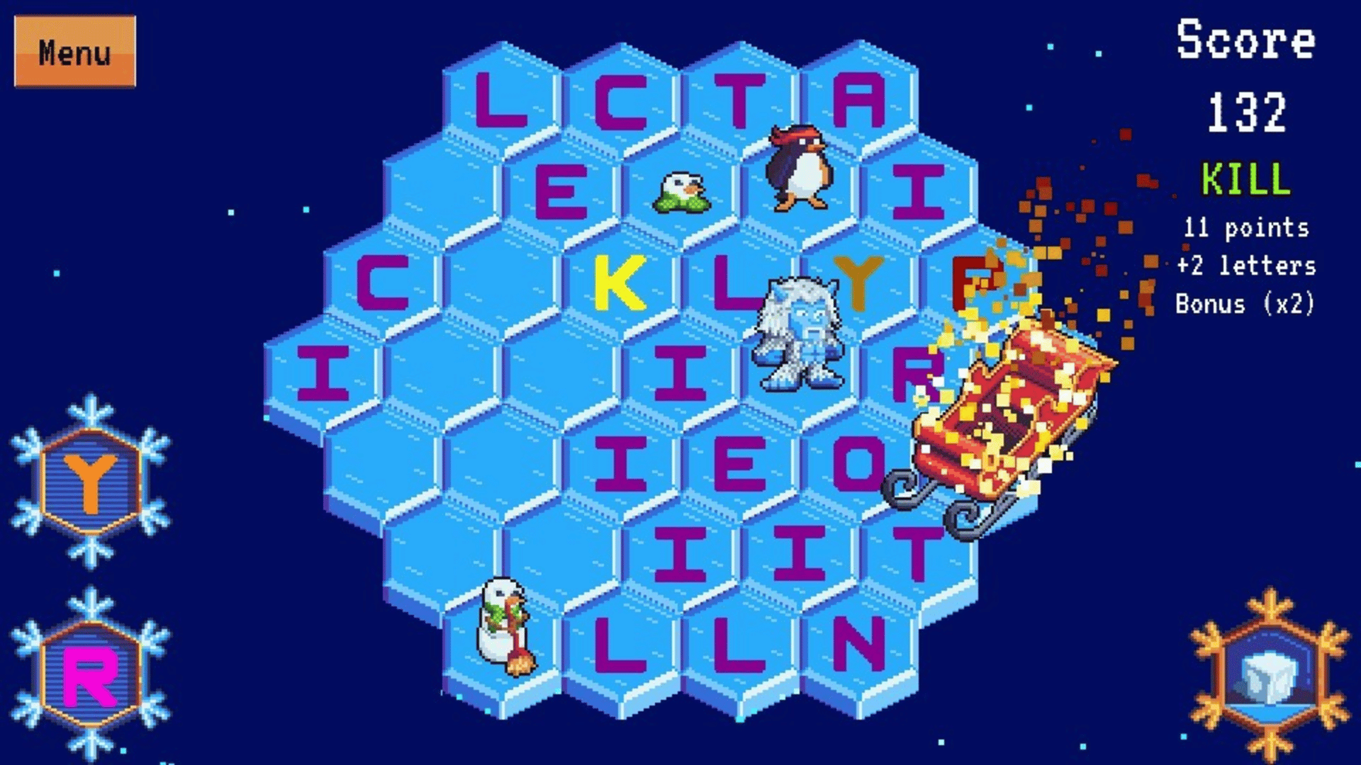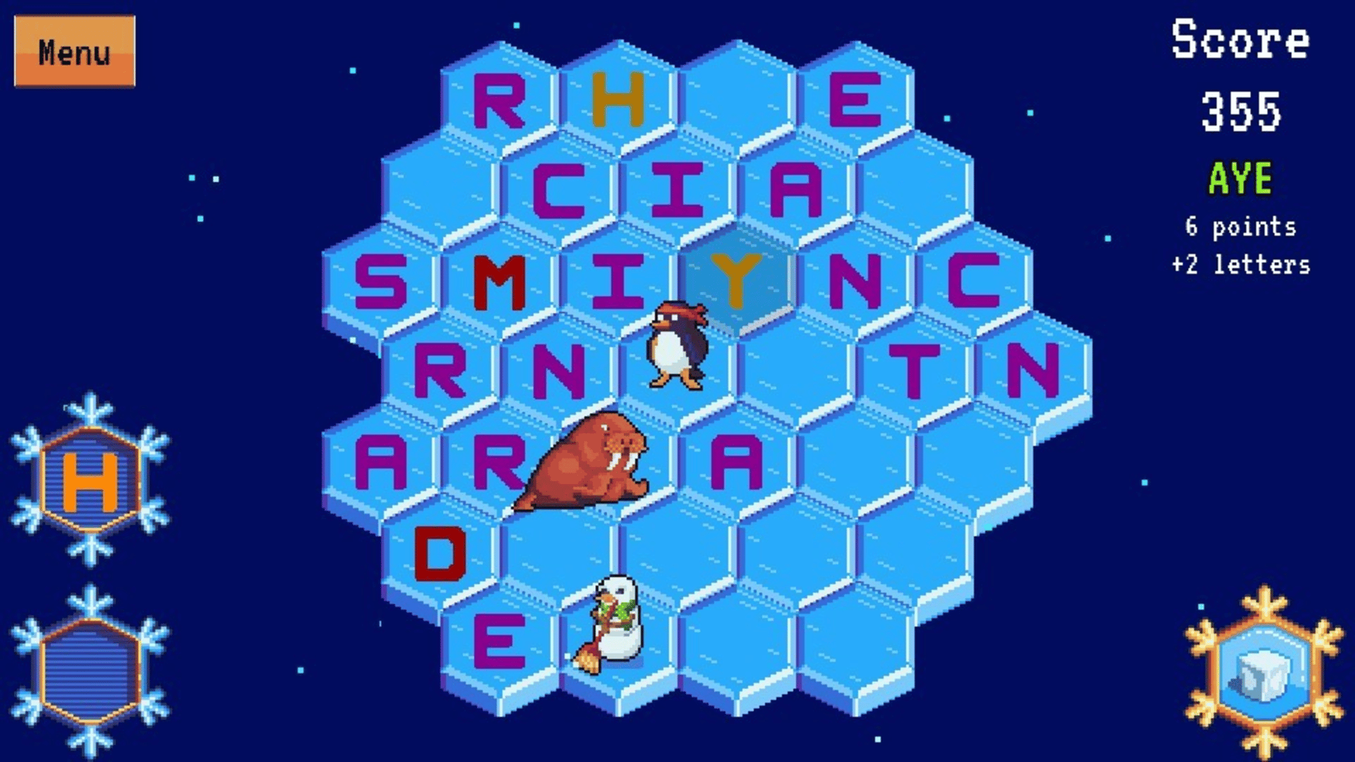 Icewords is a tactical word game where you are a penguin that moves around an iceberg by spelling words out of the letters on the ground. Enemies appear over time, and you must move strategically to force them into the water. Achieve the highest score you can before you are dunked yourself!