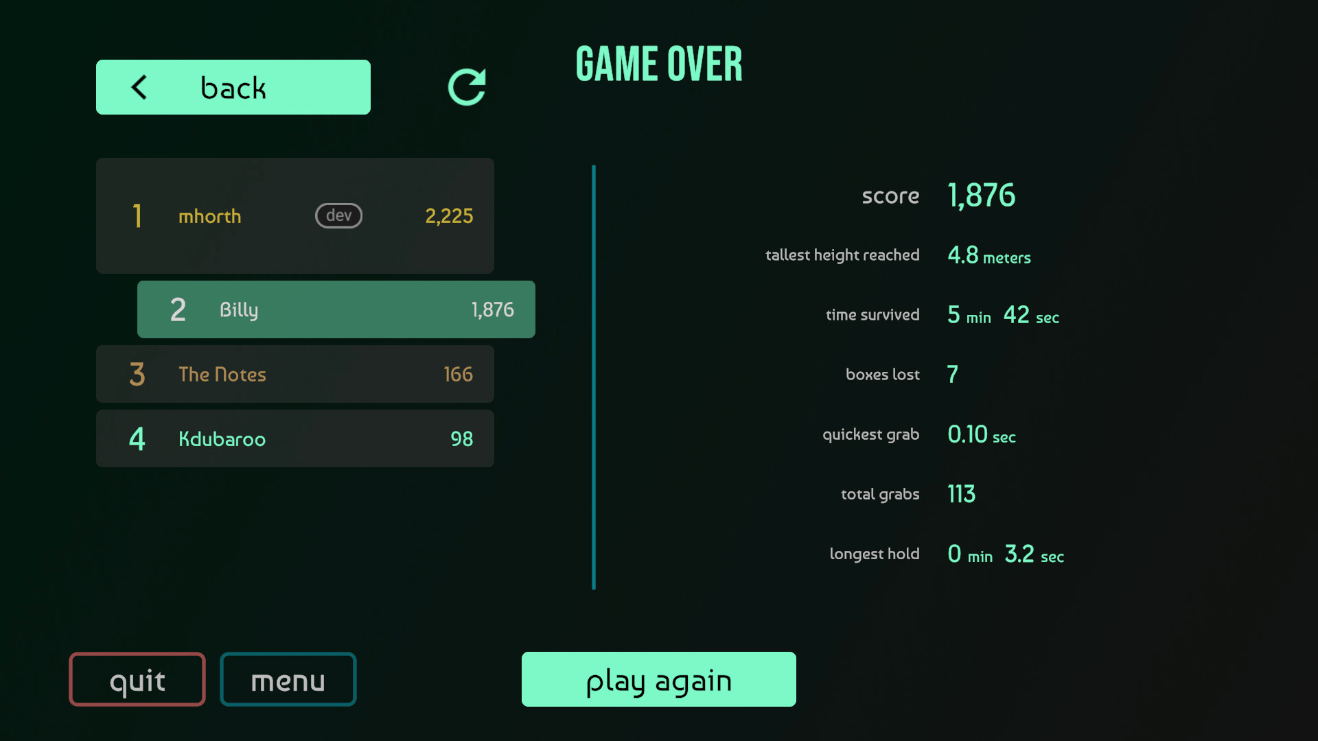 A minimalist physics simulation game about balancing weights of different shapes and sizes on a tilting platform. Simple controls let you drag and drop weights wherever you choose, and upgrades will make the balancing easier.